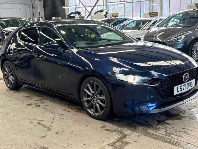 This 2021 Mazda3 e-SKYACTIV-G Sport Lux presents an exceptional opportunity with its remarkably low mileage of just 26, 000 miles for its age. This Euro 6 compliant 2.0L petrol model, finished in the Sport Lux trim, offers a refined driving experience. Inside, you'll find comfort and convenience with Dual-Zone Climate Control Air Conditioning, ensuring a pleasant cabin temperature for all occupants. Parking is made easier thanks to front and rear parking sensors, complemented by a reversing camera. The car also features dusk-sensing headlights, which automatically illuminate when needed, and Mazda Radar Cruise Control for effortless long journeys.The Mazda3 e-SKYACTIV-G Sport Lux stands out with several key advantages. Its acceleration from 0-62mph in 10.4 seconds provides a responsive drive, while its classification in a low insurance group indicates potential cost savings for owners. Furthermore, the generous boot space offers practicality for everyday needs and longer trips, making it a versatile choice compared to many similar vehicles..