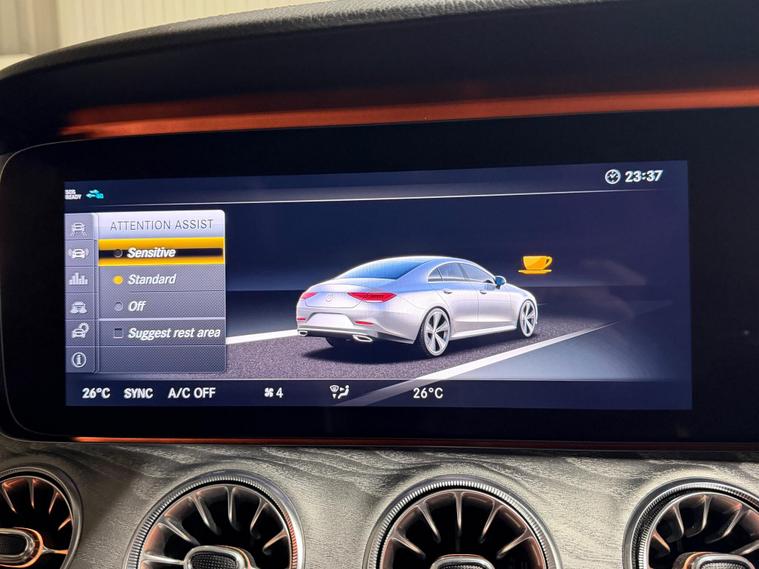 This 2018 Mercedes Benz CLS350d AMG Line (Premium Plus) boasts exceptionally low mileage for its age, having covered just 50, 000 miles, and comes with a clear vehicle history check. As a Euro 6 compliant 2.9 litre diesel, this four wheel drive model offers a refined driving experience. The AMG Line trim ensures a sporty aesthetic, complemented by the Premium Plus specification which includes desirable features such as the Comfort Pack and the advanced Driving Assistance Plus Package, incorporating Blind Spot Assistance and Adaptive Cruise Control.The intelligent Multibeam LED headlights with Adaptive Highbeam Assist Plus and Ultra Range High Beam provide exceptional visibility, while the Two Zone Automatic Climate Control ensures comfort for all occupants. Parking is made effortless thanks to the Parking Package, which includes Active Parking Assist and a Reversing Camera. This CLS also offers generous boot space, making it practical for everyday use. Its impressive acceleration, reaching 0-62mph in just 5.7 seconds, demonstrates its performance capabilities, setting it apart from many other vehicles in its class..