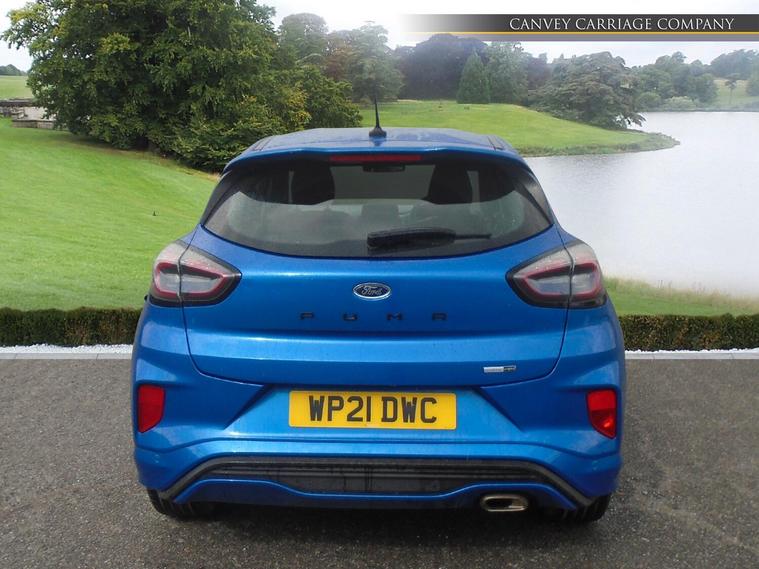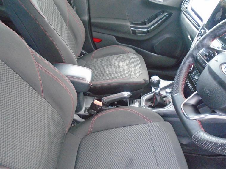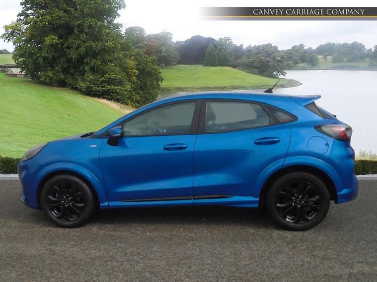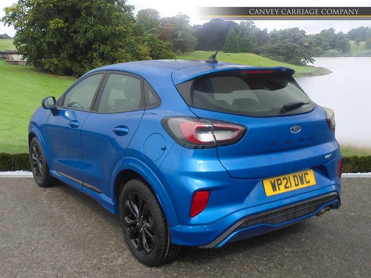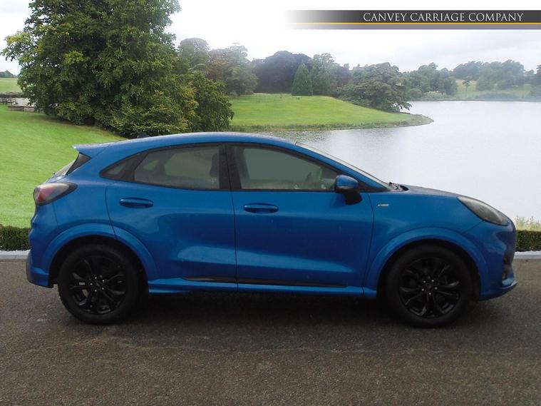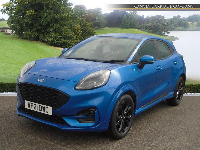 This 2021 Ford Puma T ST Line is a superb example, having been owned by just one careful keeper since new. This stylish compact SUV boasts a responsive 1.0 litre petrol engine and meets the Euro 6 emission standards. Inside, you'll find a host of convenient features designed to enhance your driving experience, including wireless phone charging, manual air conditioning to keep you comfortable, and rear parking sensors to aid with manoeuvring. The Ford SYNC 3 navigation system seamlessly integrates with your smartphone, offering both Android Auto and Apple CarPlay, alongside Bluetooth connectivity for calls and music.With an impressive fuel economy of 52 miles per gallon, this Ford Puma T ST Line offers excellent running costs, making it a sensible choice for everyday driving. Its low CO2 emissions also contribute to its appeal, indicating a more environmentally conscious performance compared to many other vehicles in its class. This combination of efficiency, technology, and practicality makes this particular Puma a standout option for anyone seeking a well equipped and economical compact SUV..