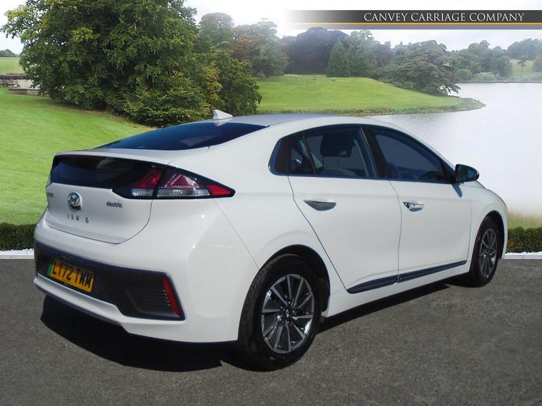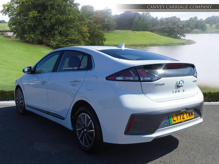 Discover this 2022 Hyundai IONIQ Premium, a superb electric vehicle offering an impressive range and advanced features. This model boasts a 43 kWh battery, providing a maximum range of 193 miles when new, making it ideal for both daily commutes and longer journeys. Charging is convenient, with a full charge at home using a 7kW charger taking approximately 6 hours and 5 minutes, while rapid public charging can take you from empty to 80% in just 54 minutes. Inside, you'll find a comfortable and connected cabin, featuring heated front passenger seats, a premium Infinity Sound System for an immersive audio experience, and Smart Adaptive Speed Control with Stop and Go functionality for effortless driving. Stay connected and powered up with the wireless phone charging pad and seamless Apple CarPlay integration.The Hyundai IONIQ Premium stands out with its generous boot space, offering ample room for luggage, shopping, or sports equipment. This electric hatchback is designed for practicality and efficiency, demonstrating how it surpasses other vehicles in its class. The combination of its substantial electric range, rapid charging capabilities, and a host of premium features like the advanced sound system and adaptive cruise control, ensures a refined and enjoyable driving experience. This 2022 IONIQ Premium is a well equipped and capable electric car ready for its next owner..