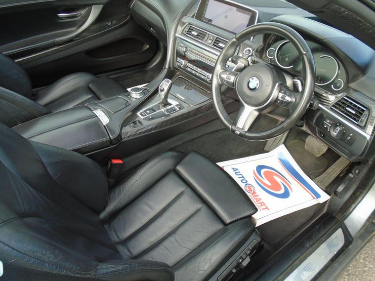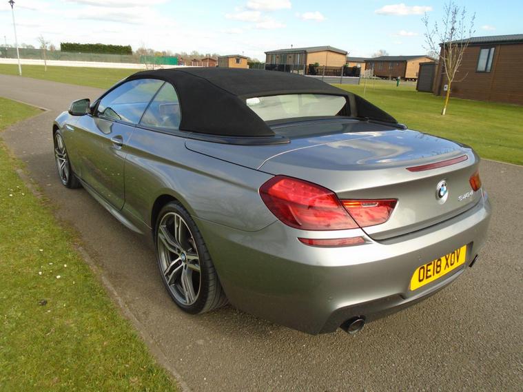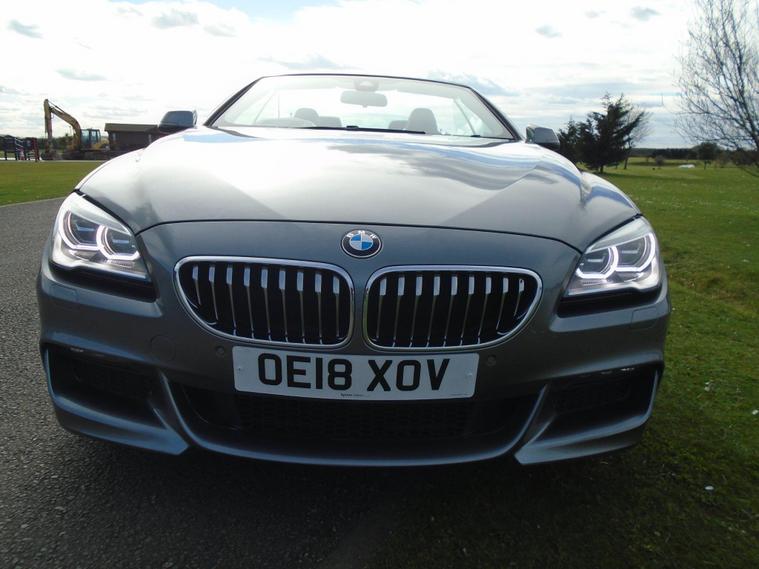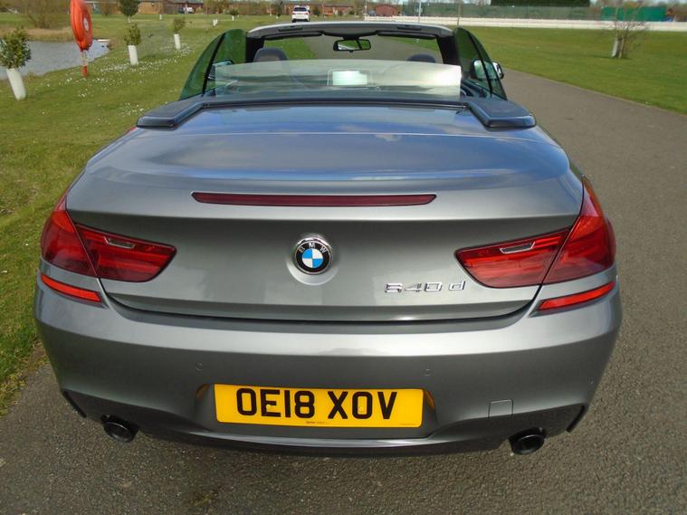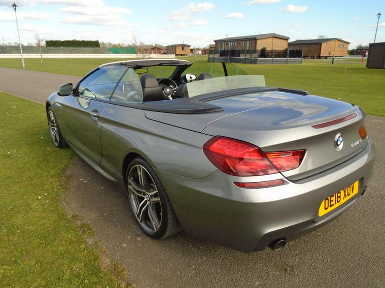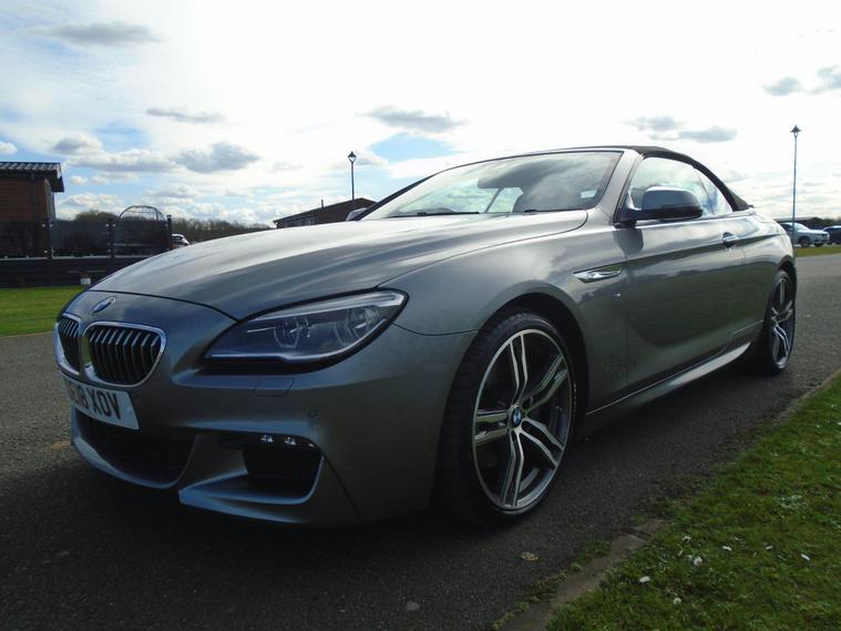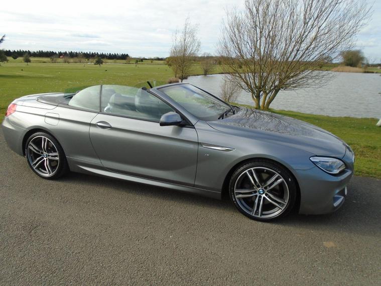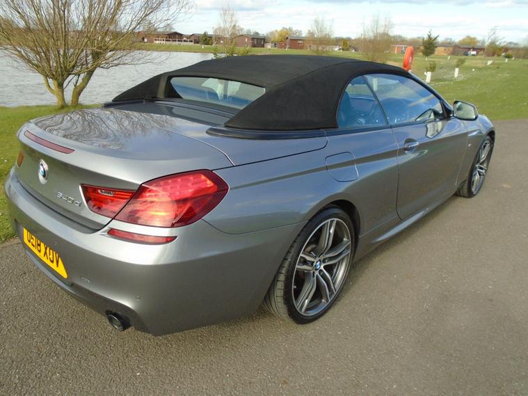 BMW 6 SERIES 3.0 640D M SPORT AUTOMATIC CONVERTIBLE EURO 6.ONE OWNER FROM NEW IN METALLIC GREY WITH CONTRASTING FULL BLACK DAKOTA LEATHER.THIS VEHICLE HAS ONLY COVERED 14800 MILE FROM NEW AND COMES WITH FULL SERVICE HISTORY.STUNNING EXAMPLE WITH MASSIVE SPEC.SAT NAV, BLUETOOTH CONNECTIVITY, REAR CAMERA, FRONT AND REAR PARKING SENSORS, HEATED SEATS, MEMORY SEATS, VIRTUAL DASH.HEADS UP DISPLAY, CARBON TRIM, HARMON CARBON SPEAKERS, AIR CON, CRUISE CONTROL, USB+AUX AND 20 INCH MULTI SPOKE DIAMOND CUT ALLOY WHEELS.BEST VALUE 640D CONVERTIBLE IN UK TODAY.STUNNING CAR THROUOUT.12 MONTHS FREE AA BREAKDOWN COVER AND 18 MONTHS NATION WIDE WARRANTY INCLUDED IN PRICE.FINANCE AVAILABLE P/X WELCOME..