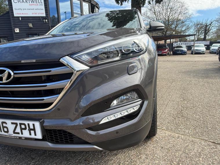 Chartwell's are pleased to offer this Hyundai Tucson 2.0 CDI Premium SE for sale. 1 owner from new. The car comes complete with a full service history accompained by a fully stamped service book. The last service was on 24/03/2026 at 33, 715 miles. The current MOT runs until 18/01/2027. This lovely ultra low mileage little example is finished in the highest spec available when new and in stunning condition throughout. We have had all 4 alloy wheels professionally refurbished. Drives superb. High spec includes the following, Metallic Paint, 18'' Alloys, Full Leather, Privacy glass, Panoramic glass sunroof, Reverse camera, Keyless start/entry, Remote locking, Dual climate control, Auto hill assist, Heated + Cooled front seats, Heated rear seats, headed streering wheel Electric windows, Power fold door mirrors, Electric heated mirrors, Steering wheel controls, Cruise control, Rear ISOFIX, Factory touch screen display, Satellite navigation, Bluetooth, DAB Radio - CD Player - AUX - USB and much more. We have the full book pack and 2 remote keys. The car is HPI clear with the printout available. We are an approved AA dealer. All our cars come with free 12 months AA breakdown cover. Drive-away insurance is now offered through the AA. Our cars (not commercial) come with a 3-month/ 3000 miles warranty as standard unless explicitly sold as a trade sale. We do offer extended warranties through WarrantyWise for 6 months - 2-year terms. For more information please call us..