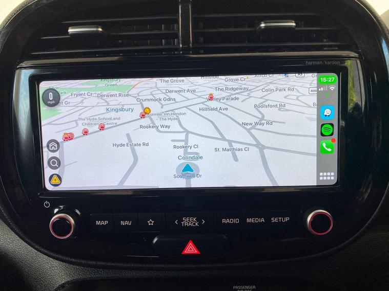 ULEZ COMPLIANT|ELECTRIC| AUTOMATIC | KEYLESS ENTRY | HEADS UP DISPLAY | LANE ASSIST | PARKING SENSORS |REVERSE CAMERA | ELECTRIC MIRRORS | HARMAN/KARDON SPEAKERS | ELECTRIC MRIRORS | VOICE COMMAND | PADDLE SHIFT | CRUISE CONTROL | SPEED LIMITER | AUTO HEADLIGHTS | AUTO WIPERS | LANE ASSIST | AUTO HOLD BRAKE | HEATED DRIVER & PASSANGER SEATS | HEATED STEERING | DRIVE MODE OPTIONS | WIRELESS PHONE CHARGING | 12V | USB | AC | PHONE PROJECTION | NAVIGATION | BLUETOOTH | RADIO | APPLE CAR PLAY | ANDROID AUTO | CAT N |FREE AA BREAKDOWN COVER WITH ALL PURCHASES|FINANCE & WARRANTY AVAILABLE|DELIVERY AVAILABLE NATIONWIDE | £99 ADMIN FEEThis 2021 Kia Soul First Edition boasts a single owner from new, offering a well cared for example of this distinctive electric vehicle. As an electric model, it features a substantial 68 kWh battery, providing a maximum range of 280 miles when new. This First Edition trim comes equipped with a suite of impressive technology, including Apple CarPlay and Android Auto, both with voice control, allowing for seamless smartphone integration. Illumination is handled by dual full LED headlights, while convenience is enhanced by a wireless mobile phone charger. For an immersive audio experience, it includes a Harman Kardon premium sound system. The impressive 280 mile range highlights how this Kia Soul offers excellent usability for both daily commutes and longer journeys, setting it apart from many other electric vehicles. Charging is also convenient, with a full charge at home using a 7kW charger taking approximately 9 hours and 35 minutes. For quicker top ups on the go, the fastest public charging time from empty to 80% is a swift 54 minutes. These charging capabilities, combined with its generous range and premium features, make this Kia Soul First Edition a compelling choice for those seeking an electric car that balances practicality with advanced technology..