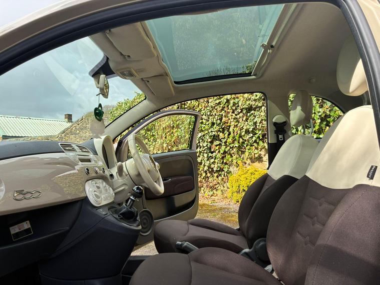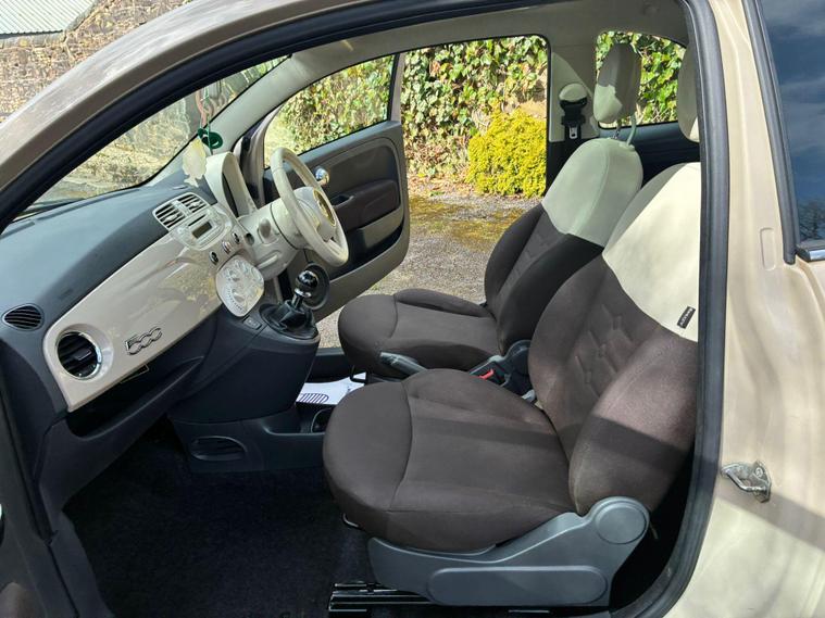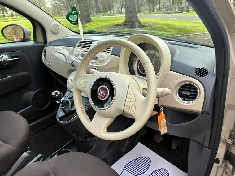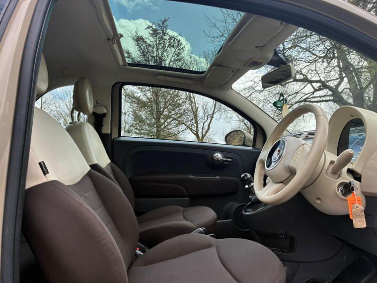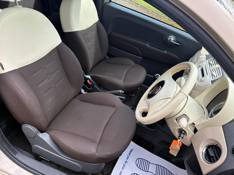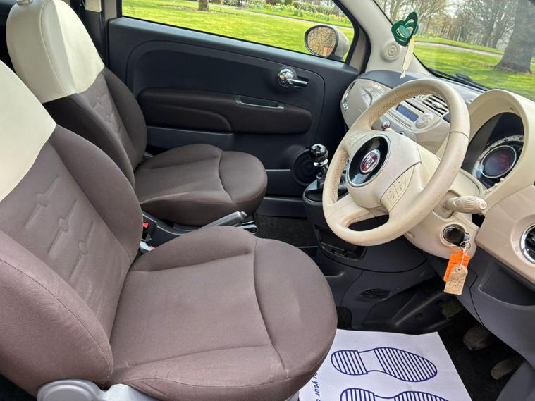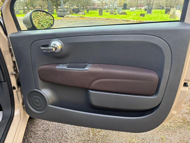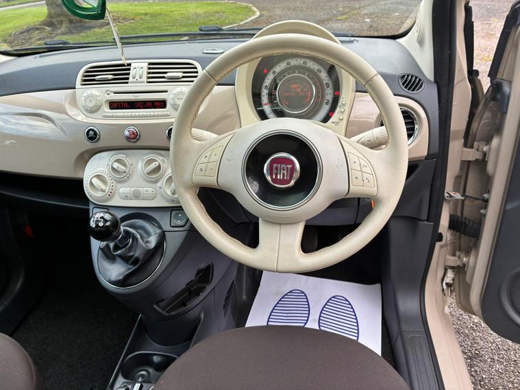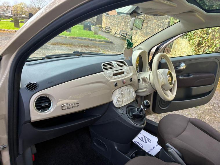 FIAT 500 1.2 LOUNGE IN A BEIGE EXTERIOR COLOUR WITH BROWN/BEIGE CLOTH INTERIOR WITH BEIGE/BROWN COLOURED TRIM... COMES WITH A LONG MOT... £35 ANNAUL ROAD TAX... COMPREHENSIVE SERVICE HISTORY WITH A RECENT SERVICE DONE AT 57K MILES... GREAT FOR A FIRST TIME DRIVER... CHEAP TO RUN... FEATURING A MULTIFUNCTION STEERING WHEEL WITH RADIO CONTROLS... CITY DRIVE... PAN ROOF... REAR FOG LIGHT... FM CD RADIO WITH RADIO CONTROLS AND AUX/USB PORTS... CLIMATE CONTROL WITH REAR HEATED WINDOWS... FRONT ELECTRIC WINDOWS... ELECTRIC ADJUSTABLE SIDE MIRRORS... CUP HOLDERS... ALLOY WHEELS WITH DECENT TREAD ALL ROUND... WARRANTY INCLUDED... ALL PART EXCHANGES ARE WELCOME... OPTIONAL NATIONWIDE DELIVERY EXTRA... BOOK-INS AND VIDEO VIEWINGS ARE AVAILABLE... TEST DRIVES ARE WELCOME... FOR MORE INFORMATION CALL US TODAY ON 01616232309. !!!CAT S BACK IN AUGUST 2022!!!.