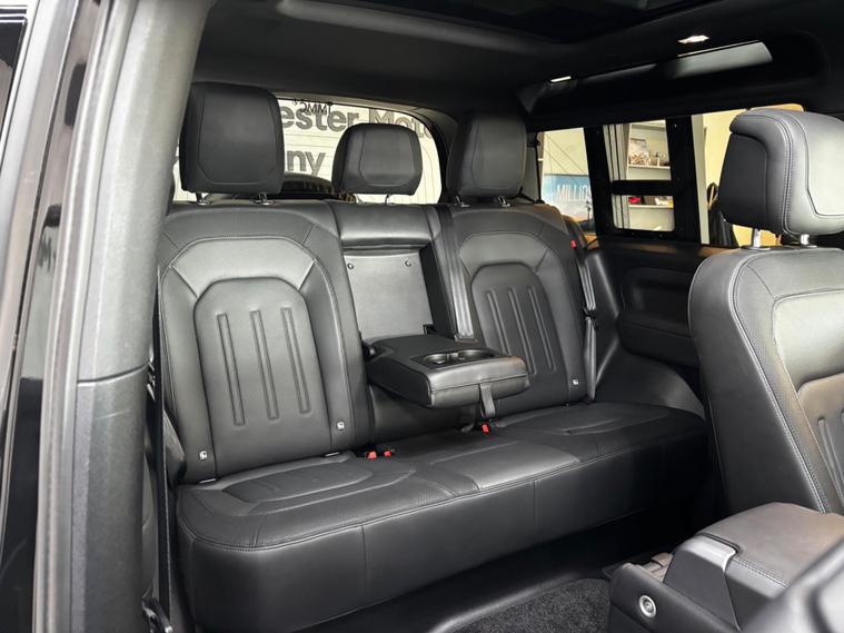 This 2021 Land Rover Defender 90 P300 X Dynamic HSE presents exceptionally low mileage for its age, having covered just 22, 300 miles. This four wheel drive model is equipped with a 2.0 litre petrol engine and meets Euro 6 emission standards. It boasts a substantial towing weight of 3500 kg, making it a capable companion for various needs. Notable features include striking Matrix LED headlights with signature Daytime Running Lights, a comprehensive 360 degree parking aid with a camera system, and Adaptive Cruise Control for enhanced driving comfort. Inside, you can enjoy the premium Meridian Sound System and seamless connectivity with Android Auto.The performance of this Defender 90 is equally impressive, accelerating from 0 to 60 miles per hour in a swift 6.7 seconds. This rapid acceleration, combined with its robust four wheel drive system and advanced features like the Meridian Sound System and Adaptive Cruise Control, sets it apart from other vehicles in its class. The inclusion of Android Auto further enhances its appeal, offering modern convenience and entertainment for every journey..
