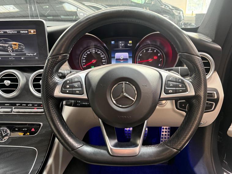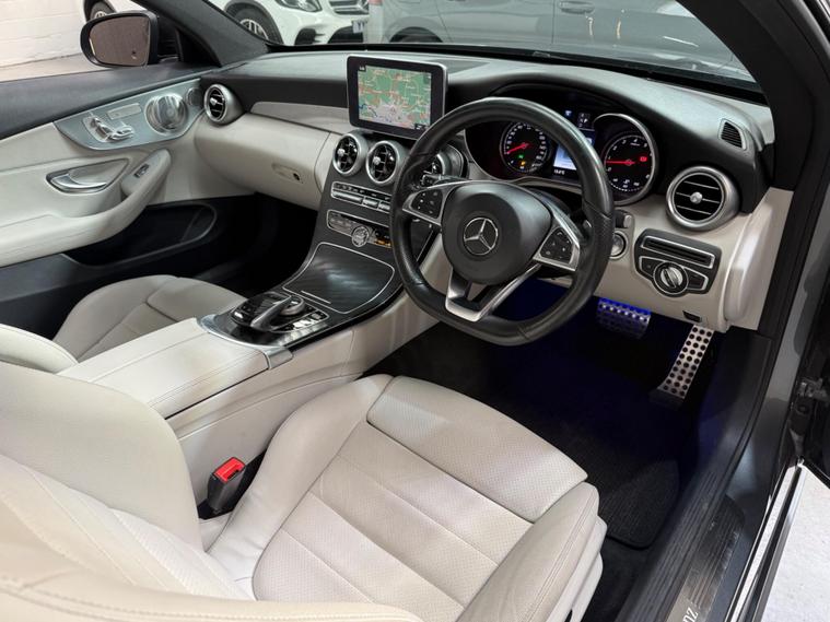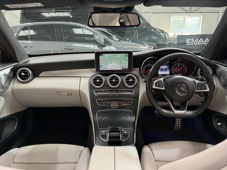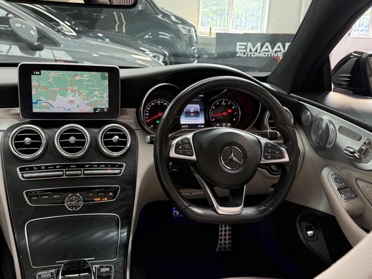 NOTHING WRONG WITH THE LIGHTS JUST THE REFLECTION OF LIGHTING + TINTED, 1 KEY, FSH!!!!!This 2017 Mercedes Benz C Class C300 AMG Line (Premium Plus) boasts a clear vehicle history check, offering you peace of mind. This stylish saloon features a powerful 2.0L petrol engine and meets Euro 6 emissions standards. The AMG Line trim enhances its sporty appeal, while the Premium Plus package adds luxurious touches including a branded sound system, keyless entry, a panoramic sunroof, and memory seats. You'll also benefit from Active Parking Assist with front and rear sensors, THERMATIC automatic climate control for two zones, and LED High Performance headlamps with integrated daytime running lights. The convenience of Bluetooth connectivity for hands free calls is also included.This Mercedes Benz C Class is designed to impress with its efficiency and practicality. It achieves an impressive fuel economy of 44 mpg, indicating it is more economical than many similar vehicles. Furthermore, its low CO2 emissions highlight its environmental consideration. The generous boot space ensures you have ample room for luggage or shopping, making it a versatile choice for everyday use and longer journeys..