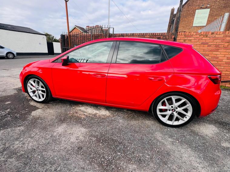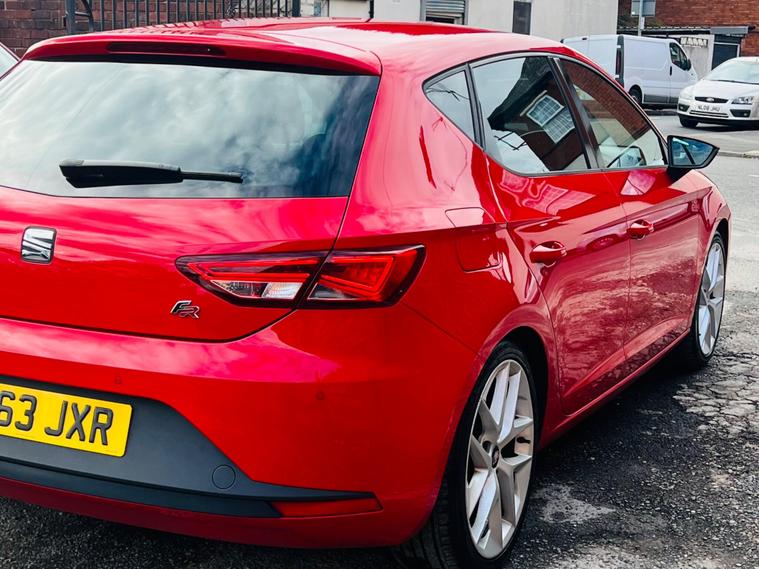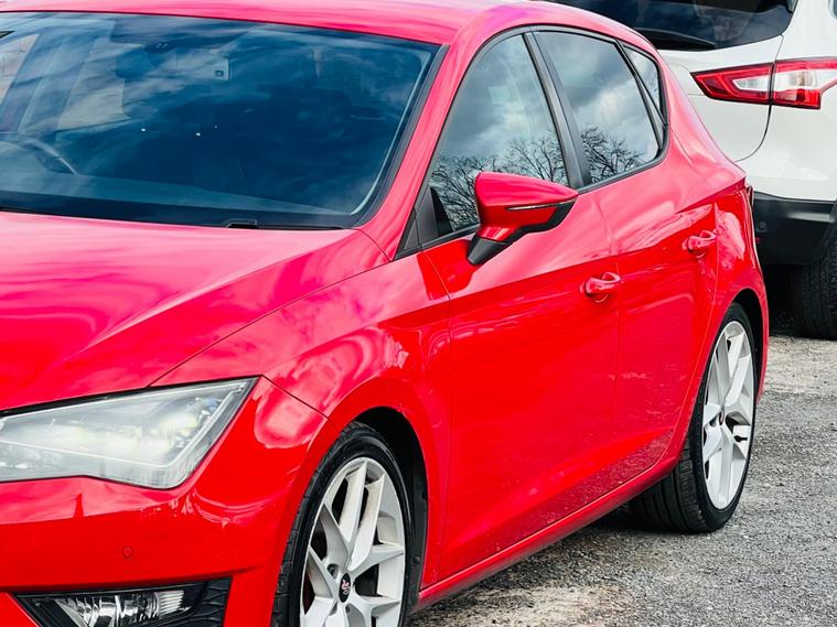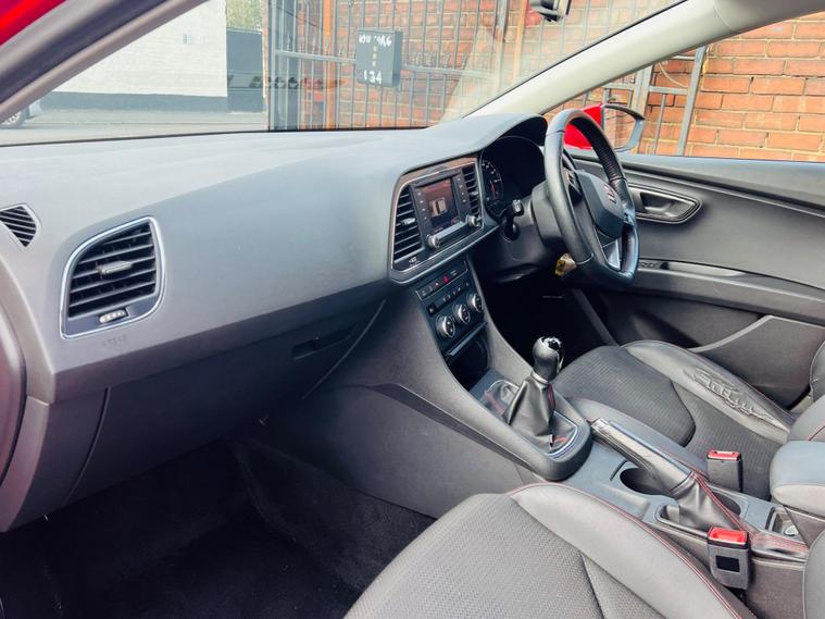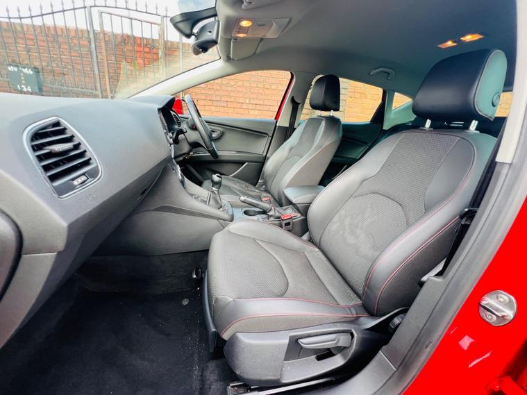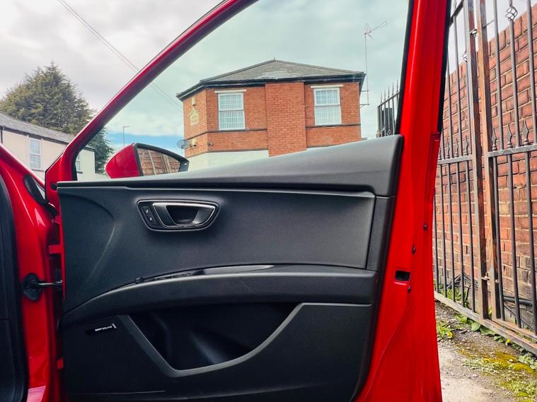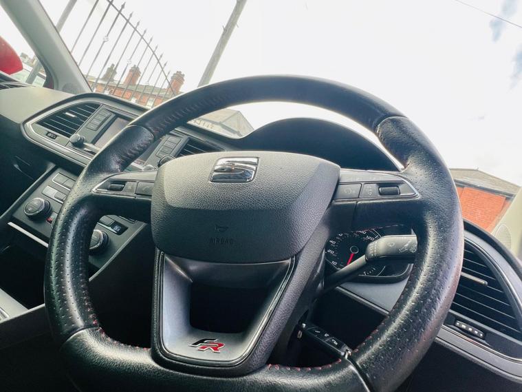 - Steering Wheel - Flat-Bottomed Perforated Leather with Red Stitching and FR Logo