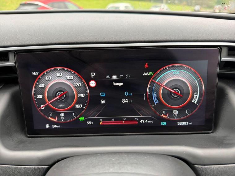 This 2023 Hyundai TUCSON h T-GDi Premium is a fantastic example, having had only one owner since new. This Euro 6 compliant, Four Wheel Drive model boasts a 1.6 litre Petrol Plug-in Hybrid engine, offering an efficient and capable driving experience. It comes equipped with a host of modern conveniences, including AC and domestic charging cables, a wireless phone charging pad, and smart keyless entry with an engine start stop button. The Premium trim also features MFR LED headlights with static bending light for enhanced visibility.The TUCSON Premium stands out with its generous boot space, providing ample room for all your luggage or shopping needs. Furthermore, its low insurance group rating indicates that running costs are likely to be more affordable compared to similar vehicles. These highlights, combined with its advanced hybrid technology and premium features, make this Hyundai TUCSON a compelling choice for those seeking a practical and well equipped SUV..