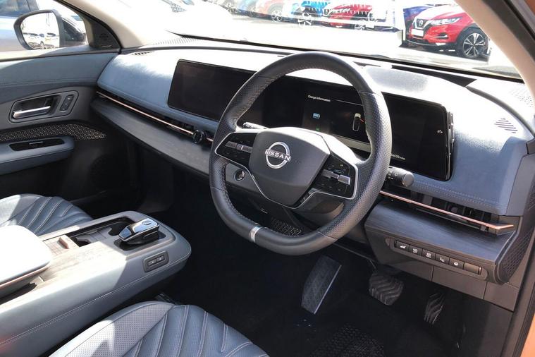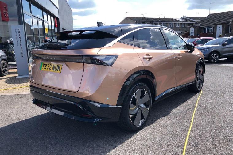This stunning, one owner, Nissan Ariya Evolve E-Force 4WD automatic, comes finished in Akatsuki Copper Metallic. This car comes with a full Nissan Service History, 2 keys, and all owners manuals and service book. Features include satellite navigation with navi link, 360 parking camera, Apple Carplay/Android Auto, adaptive automatic headlights & windscreen wipers, heads up display, wireless charger, heated and cooling seats, windscreen and steering wheel keyless entry and start, rear privacy glass, emergency forward braking, front and rear parking sensors, power folding door mirrors, power tailgate, digital radio (DAB), and much more. Call us today for more information, or to arrange a test drive. Can't make it down to our showroom? Ask us for a personalised video of the vehicle, purchase remotely, and get us to deliver direct to your door..