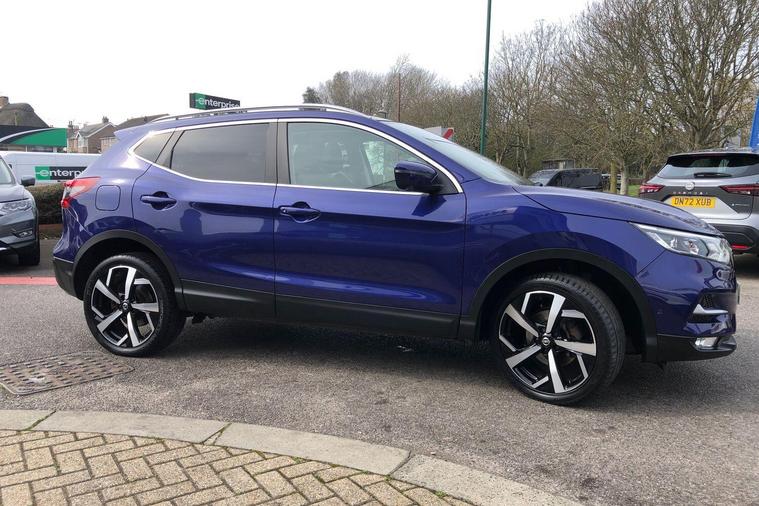 This stunning, Nissan Qashqai Tekna manual, comes finished in Ink Blue. This car comes with a full Service History, 2 keys, and all owners manuals and service book. Features include satellite navigation, 360 parking camera, Apple Carplay/Android Auto, automatic headlights & windscreen wipers, heated seats and windscreen, keyless entry and start, rear privacy glass, emergency forward braking, rear parking sensors, power folding door mirrors, digital radio (DAB), and much more. Call us today for more information, or to arrange a test drive. Can't make it down to our showroom? Ask us for a personalised video of the vehicle, purchase remotely, and get us to deliver direct to your door..