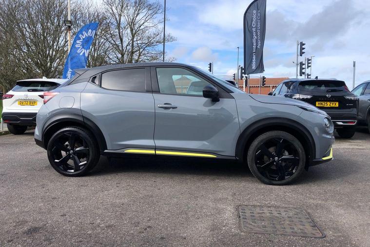 This stunning, 2 Retail owner, Nissan Juke Kiiro manual, comes finished in Grey Ceramic . This car comes with a full Nissan Service History, 2 keys, and all owners manuals and service book. Features include satellite navigation, rear parking camera, Apple Carplay/Android Auto, automatic headlights & windscreen wipers, keyless entry and start, rear privacy glass, emergency forward braking, Front and rear parking sensors, power folding door mirrors, digital radio (DAB), and much more. Call us today for more information, or to arrange a test drive. Can't make it down to our showroom? Ask us for a personalised video of the vehicle, purchase remotely, and get us to deliver direct to your door..