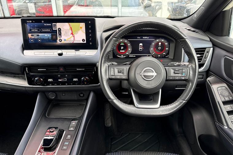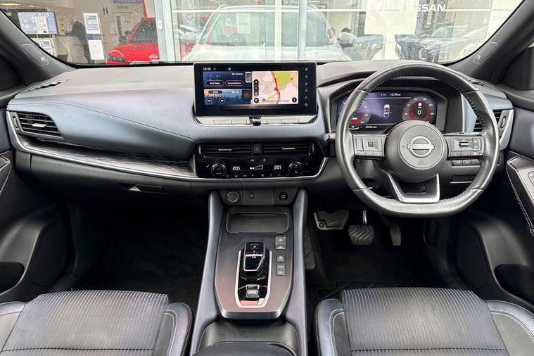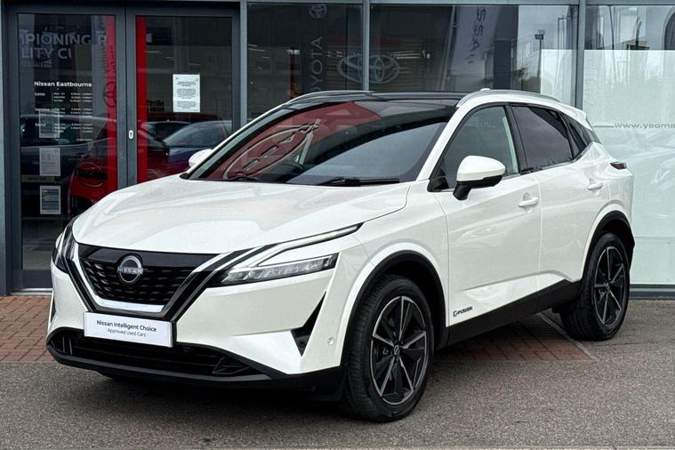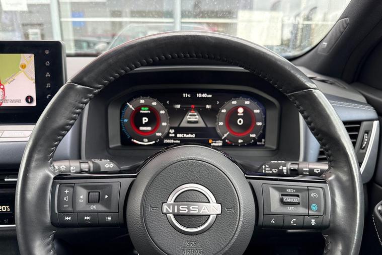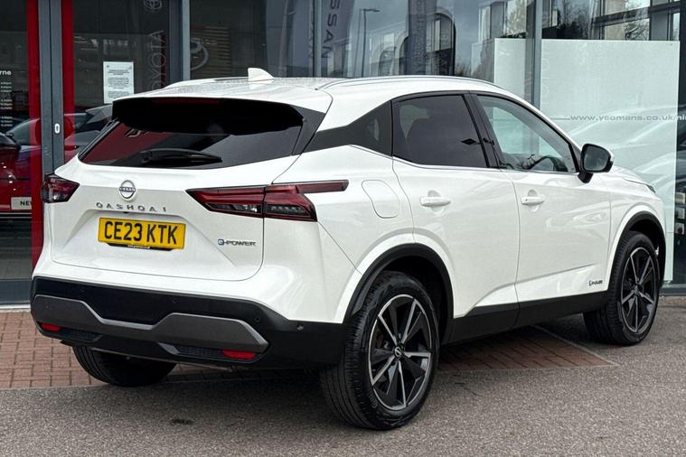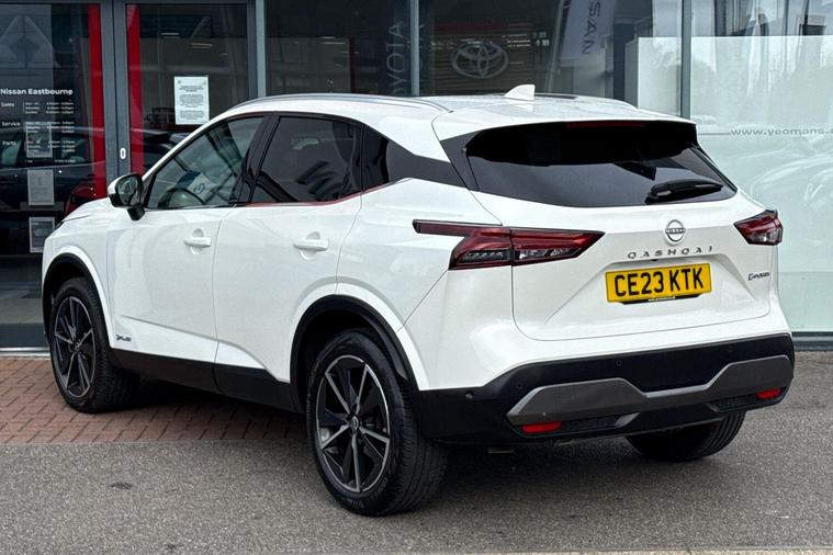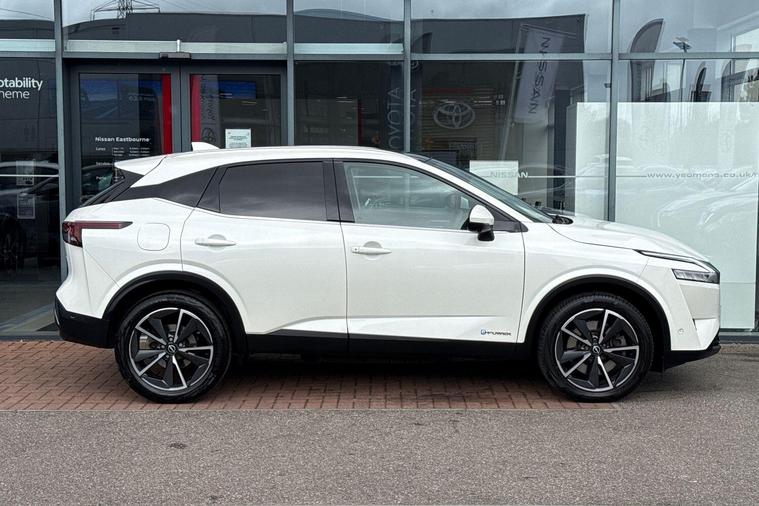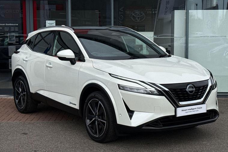 This 2023 Nissan Qashqai e-POWER Tekna is a Nissan manufacturer approved vehicle with a full dealership service history, most recently serviced on 7 January 2025 at 23, 299 miles, and benefits from an MOT valid until January 2027. This single owner vehicle features a 1.5 litre petrol hybrid engine and meets Euro 6 emission standards. Notable features include an Advanced Windscreen Head Up Display, Intelligent Blind Spot Intervention, LED Headlights with Adaptive Driving Beam, Intelligent Around View Monitor with a 360 degree camera, and a Rear View Camera for enhanced parking assistance.Experience impressive performance with this Qashqai, achieving 0-62mph in just 7.9 seconds, while its hybrid technology helps deliver excellent fuel economy of 53 mpg and low CO2 emissions, making it a more efficient choice compared to similar vehicles. The generous boot space ensures practicality for all your needs, combining advanced technology with everyday usability..