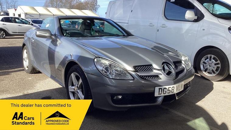 A REALLY GREAT VALUE MERCEDES FACELIFT SLK WITH AMAZING GOOD SRVICE HISTORY 13 SERVICES. A LADY OWNER FOR 13 YEARS THERE IS A BIT OF SLIGHT CORROSION IN THE FRONT OF THE FRONT WINGS AND REAR WHEEL ARCHES A COMMON FAULT ON ALL MERCEDES 2007 TO 2009 AND THERES A FEW MARKS ON THE REAR BUMPER NOTHING TO SERIOUS AND A REAL BARGAIN AT £3000.00 . THE POWER ROOF WORKS PERFECTLY. THIS Mercedes-Benz SLK 1.8 SLK200K AUTOMATIC Tiptronic Euro 4 2dr LOOKS AMAZING IN THE BEST COLOUR GREY METALLIC CONTRASTING GREY CLOTH SEATS & INTERIOR AND ALUMINIUM TRIM TO THE DASH AND DOOR CARDS YES VERY SMART. THE LAST OWNER HAS LOVED AND CHERISHED THE CABRIOLET FOR 13 YEARS & THE ROADSTER HAS A POWER CONVERTIBLE ROOF, TELEPHONE BLUETOOTH TELEPHONE CONNECTION, STEREO RADIO/CD-PLAYER, REMOTE CONTROL CENTRAL LOCKING SYSTEM, 17 INCH ALLOY WHEELS WITH GOOD TYRES. THERE ARE TWO SETS OF KEYS & ALL THE BOOKS AND MANUALS This 2008 Mercedes Benz SLK200K boasts a remarkable history, having been owned by only three previous keepers. This stylish convertible features a 1.8 litre petrol engine and comes equipped with a convenient Bluetooth system for seamless connectivity and auto climate control to ensure your comfort in all conditions. With a fuel economy of 35 miles per gallon, this SLK200K offers an attractive proposition for those seeking efficiency. Its low CO2 emissions also highlight its consideration for the environment, making it a more appealing choice compared to many other vehicles in its class..