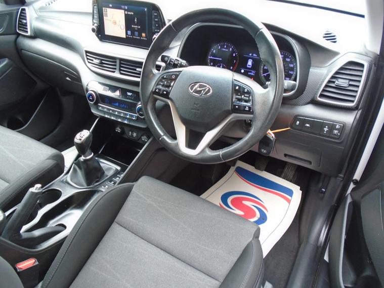 HYUNDAI TUCSON 1.6 GDI SE NAV 5 DOOR EURO 6.BRILLIANT WHITE WITH CONTRASTING BLACK DETAILED CLOTH INTERIOR.LOW MILEAGE WITH FULL SERVICE HISTORY AND GREAT dealer's website WITH SAT NAV, APPLE PLAY, BLUETOOTH CONNECTIVITY, REAR CAMERA, AIR CON, CRUISE CONTROL, USB+AUX AND 17 INCH ALLOY WHEELS.DRIVES SUPERB WITH MOT UNTIL MARCH 2027 AND FRESH SERVICE.12 MONTHS FREE AA BREAKDOWN COVER AND 18 MONTHS WARRANTY INCLUDED IN PRICE.FINANCE AVAILABLE P/X WELCOME..