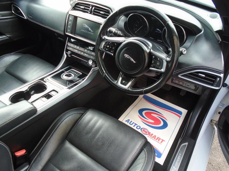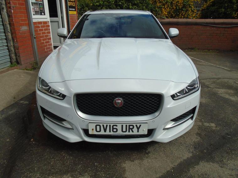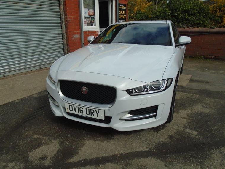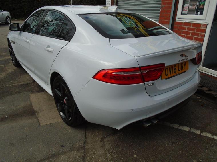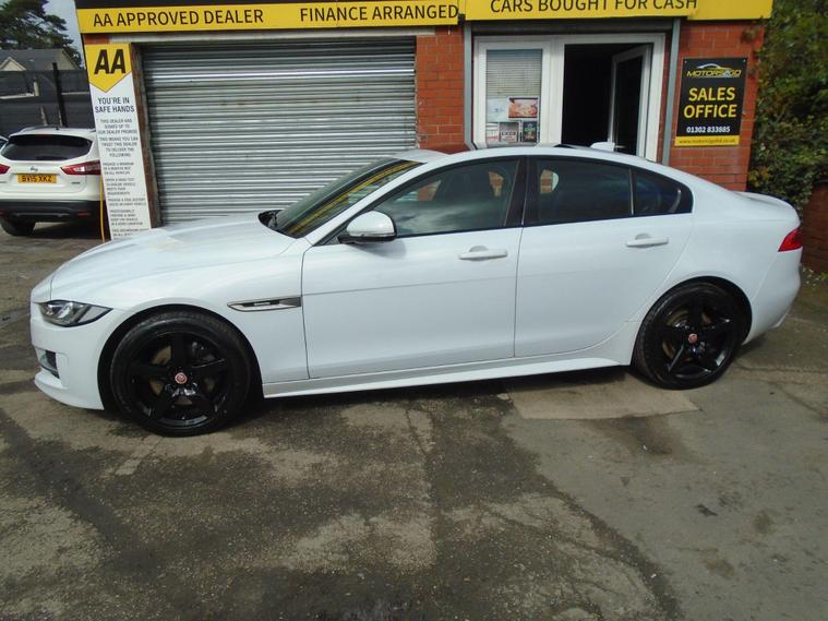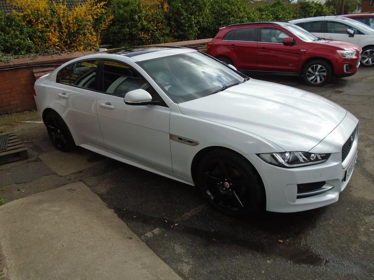 JAGUAR XE 2.0D R-SPORT AUTOMATIC AWD EURO dealer's website IN METALLIC WHITE WITH CONTRASTING FULL BLACK LEATHER WITH FANTASTIC SPEC.FULL PANORAMIC ROOF, SAT NAV, BLUETOOTH CONNECTIVITY, FRONT AND REAR PARKING SENSORS, HEATED SEATS, CRUISE CONTROL, AIR CON, USB+AUX AND 18 INCH ALLOY WHEELS.JAGUAR PLUS ONE OWNER FROM NEW WITH MOT UNTIL APRIL 2027 AND FULL SERVICE HISTORY.12 MONTHS FREE AA BREAKDOWN COVER AND 18 MONTHS WARRANTY INCLUDED IN PRICE.FINANCE AVAILABLE P/X WELCOME..