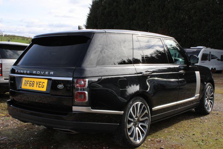 THE UK'S LARGEST RANGE ROVER SPECIALIST ARE PLEASED TO OFFER THIS INCREDIBLY RARE 2019 MY RANGE ROVER NOT ONLY THE TOP OF THE RANGE SDV8 LWB ( LONG WHEEL BASE ) AUTOBIOGRAPHY MODEL BUT ALSO WITH INCREDIBLY LOW GENUINE MILES BACKED UP BY A FULL LAND ROVER MAIN DEALER SERVICE HISTORY, JUST BEEN FULLY SERVICED AND INSPECTED, FINISHED IN A SANTORINI BLACK WITH FULL EBONY HIDE AND WOOD FINISHERS -- FREE 6 MONTHS PARTS AND LABOUR WARRANTY INCLUDING BREAKDOWN COVER AND COURTESY CAR -- FREE 12 MONTHS AA COVER OR 12 MONTHS UPGRADED AA COVER IF YOU ARE ALREADY A AA MEMBER -- FREE FULL MOT WITH EVEN THE ADVISORIES DONE -- FULL INSPECTION WITH ANY FAULTS FIXED BACKED UP BY A 30 DAYS MONEY BACK GUARANTEE -- HUD heads up display - Factory fitted rear Seat Entertainment with 10in Screens - Electric side steps - Detachable towbar - 22'' alloy wheels - Pixel-laser LED Headlights with Signature DRL Electric rear armrest - Driver Assist Pack - Meridian Sound System - Traffic Sign Recognition with Lane Departure Warning - Opening panoramic glass Roof - Heated Leather Steering Wheel - Heated/cooled front and rear seats with full body massage - 360 surround cameras - Blind spot monitor - High beam assist - Soft close doors plus auto open and close tailgate - Winged headrests - Fridge - Leather headlining - Extended nappa leather to doors and dash - Adaptive Cruise Control with Queue Assist - Timed climate - Freeview digital TV tuner - Navigation System TMC (Dynamic Route Guidance) - Digital Radio (DAB) - Bluetooth audio streaming - Improved 2019 model year but registered late 2018 -- FINANCE AVAILABLE AT VERY COMPETITIVE RATES -- WE ARE A FAMILY RUN RANGE ROVER VOGUE SPECIALIST AND HAVE THE BIGGEST SELECTION IN THE UK WITH UP TO 70 RANGE ROVER VOGUE'S IN STOCK PLEASE SEE OUR WEB SITE dealer's website FOR FULL STOCK LIST AND UP TO 50 HD PICTURES OR IF YOU NEED ANYTHING RANGE ROVER PLEASE CALL ME JAMES DIRECT ON 01619702169.