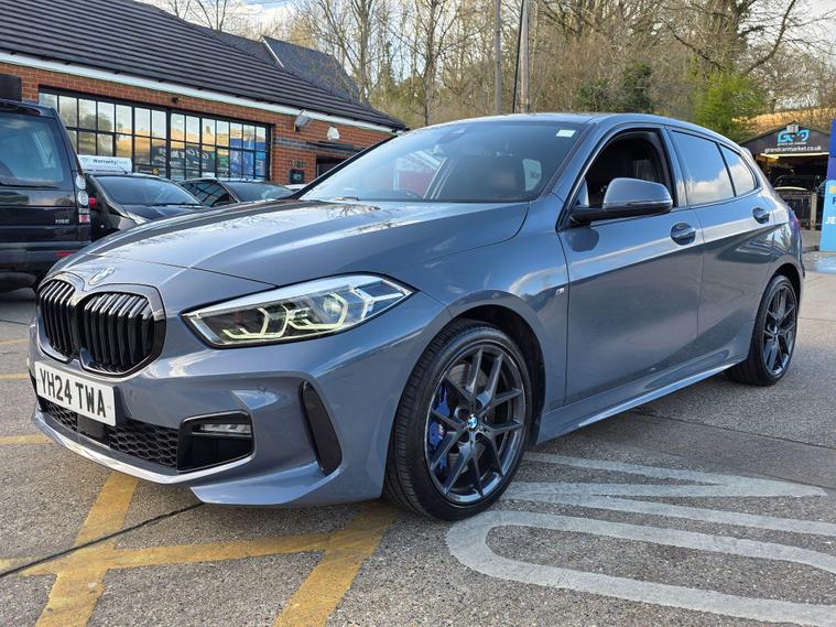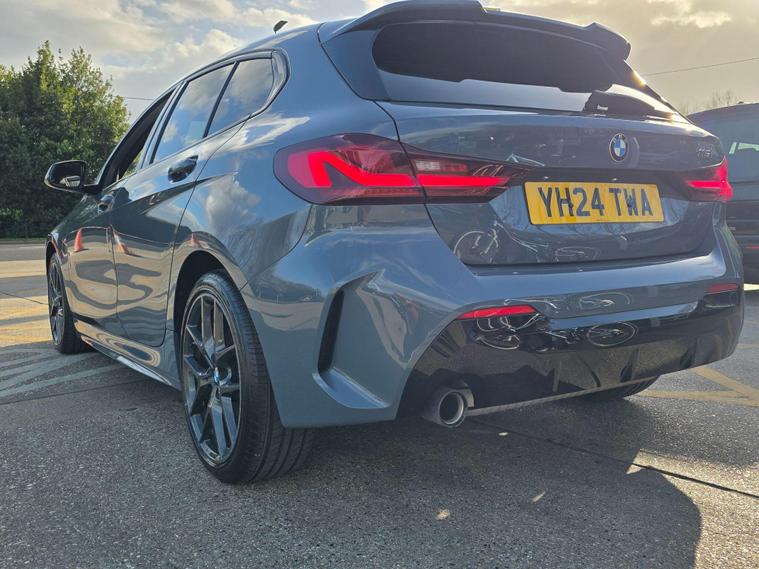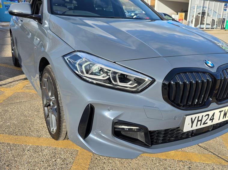 This 2024 BMW 1 Series 118i M Sport (LCP) boasts a full dealership service history and has had only one owner from new, ensuring excellent provenance. This Euro 6 compliant model features a responsive 1.5L petrol engine and comes with an M Sport trim, enhanced by the M Sport Pro Package. Inside, you'll find comfortable seat heating for the driver and front passenger, a Harman Kardon Surround Audio Sound System for an immersive listening experience, and a rain sensor with automatic headlight activation for convenience. Connectivity is made easy with Bluetooth hands free and a USB audio interface.The BMW 1 Series 118i M Sport offers a compelling blend of performance and practicality. Its acceleration from 0 to 62mph in just 8.8 seconds demonstrates its dynamic capability, setting it apart from many similar vehicles. Furthermore, the generous boot space provides ample room for luggage or shopping, making it a versatile choice for everyday use. With an MOT valid until March 2027 and a 6 month warranty included, this vehicle offers peace of mind for its next owner..