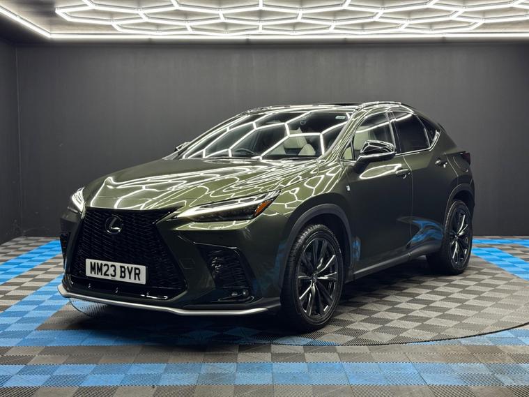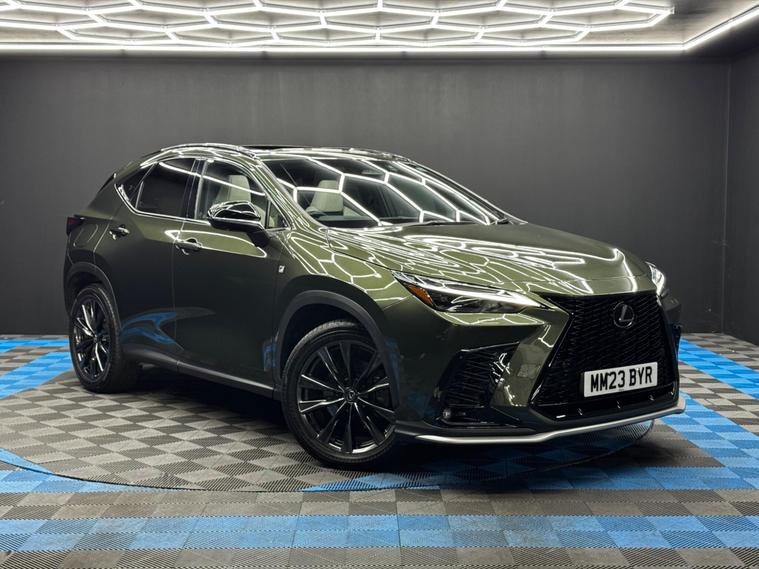 Here at Motor Gurus we are delighted to offer a Lexus NX 2.5 450h+ 18.1kWh F Sport E-CVT 4WD. This vehicle is in very good condition when taking into consideration the vehicle's age and mileage. This specific vehicle is finished in a METALLIC GREEN and is contrasted by a WHITE LEATHER interior. This vehicle comes included with: FRONT & REAR PARKING SENSORS, 360° VIEW PARKING CAMERAS, PRIVACY GLASS, SLIDING GLASS SUNROOF, ELECTRIC TAILGATE, FRONT HEATED/VENTED/ELECTRIC SEATS, DRIVER MEMORY SEAT, PERFORATED GRIPPED LEATHER STEERING WHEEL, CRUISE CONTROL, AUTOMATIC HEADLIGHTS, DIGITAL COCKPIT, HEADS UP DISPLAY, AUTO HOLD, TWIN CUPHOLDERS, DRIVING MODES, CLIMATE CONTROL, SAT NAVIGATION, DAB RADIO, BLUETOOTH AUDIO, TELEPHONE CONNECTIVITY, APPLE CARPLAY, WIRELESS PHONE CHARGING, COLLISION AVOIDANCE, SPEED LIMIT ASSIST, TRAFFIC SIGN ASSIST, BLIND SPOT MONITORING, TYRE PRESSURE MONITORING AND MUCH MORE! Our Lexus NX 2.5 450h+ 18.1kWh F Sport E-CVT 4WD has come to us with SERVICE HISTORY, 2 KEYS and is a 1 OWNER FROM NEW! We will also provide a 12 MONTH MOT and a FRESH OIL SERVICE before it leaves our premises (OTR)..