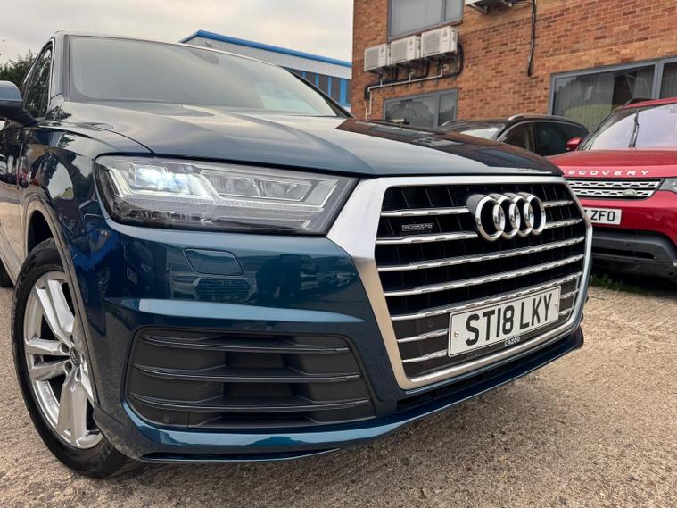 Up to 3 years Customer Protect (Auto Protect) Warranty, 2 PREVIOUS OWNERS, MOT TILL 19TH OF JANUARY 2027, ULEZ COMPLIANT, FINANCE PACKAGE AVAILABLE, 12 MONTHS AA BREAKDOWN COVER, 5 DAYS DRIVE AWAY INSURANCE AVAILABLE T & C APPLY, RECENTLY SERVICED.This 2018 Audi Q7 TDI V6 S line boasts exceptionally low mileage for its age, having covered just 62, 925 miles. This impressive seven seater SUV features a powerful 3.0 litre diesel engine paired with Audi's renowned Four Wheel Drive system, ensuring excellent performance and grip. As a Euro 6 compliant vehicle, it meets stringent emission standards. The S line trim level enhances its sporty appeal, and it comes equipped with a host of desirable features including Deluxe Four Zone Automatic Climate Control for personalised comfort, and advanced LED headlights with dynamic rear indicators and high beam assist for superior visibility. The convenience of a Bluetooth interface for seamless connectivity and a light and rain sensor that automatically adjusts headlights and wipers are also included, alongside electric front heated seats for added comfort during colder journeys. Other notable features include electric rear seats, rear view camera, cockpit, navigation system, front and rear parking sensors, electric tail gate and wing mirrors, and Audi Interface.The Audi Q7 TDI V6 S line offers a compelling blend of luxury, performance, and practicality. Its acceleration from 0 to 62 miles per hour in just 6.5 seconds highlights its dynamic capabilities, making it a responsive drive. Furthermore, its low insurance group rating indicates that running costs are kept competitive, which is a significant advantage for potential owners. With a substantial towing weight of 2800 kg, this Q7 is also exceptionally capable for those needing to tow caravans, trailers, or horseboxes, demonstrating its versatility beyond everyday family transport..