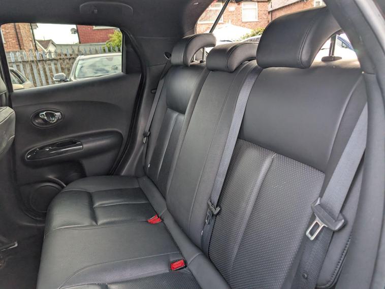 Superb Condition | Service HistoryCLICK & COLLECT AVAILABLE – Includes Fresh Service, MOT, and WarrantyFinance Available – Starting from 9.9% APR - To apply please select your car on our website: dealer's website and follow the link provided below each advert to apply for finance!We are delighted to offer this fantastic example of this NISSAN JUKE TEKNA with brilliant black alloy wheels.-Full Black leather interior with front heated seats.-Leather steering wheel with audio and cruise controls.-Centre console touchscreen-DAB, Bluetooth and SATNAV.-360 CAMERA✅ Mechanical Inspection Report Included✅ Minimum 6 Months MOT✅ Warranty Included✅ HPI Clear✅ Fully Valeted✅ Engine & Gearbox Fully Inspected by On-Site MechanicsWhy Buy from Liv Motors?We’re a family-run business with a friendly, experienced team of customer service advisors and qualified mechanics on-site. When you purchase from us, you’re not just buying a car – you’re investing in peace of mind.We Offer:? Car Finance Options? Part Exchange Welcome?️ Service Plans Available?️ Comprehensive WarrantyTest Drives Available | Contact Us Anytime with Your Queries – We’re Here 24/7!? Direct Line: 01616232975? Address: Liv Motors, Poppythorn Lane, Prestwich, Manchester, M25 3BS? Opening Hours: 9:00 AM – 6:00 PM Daily? After 6 PM – Appointments Only.