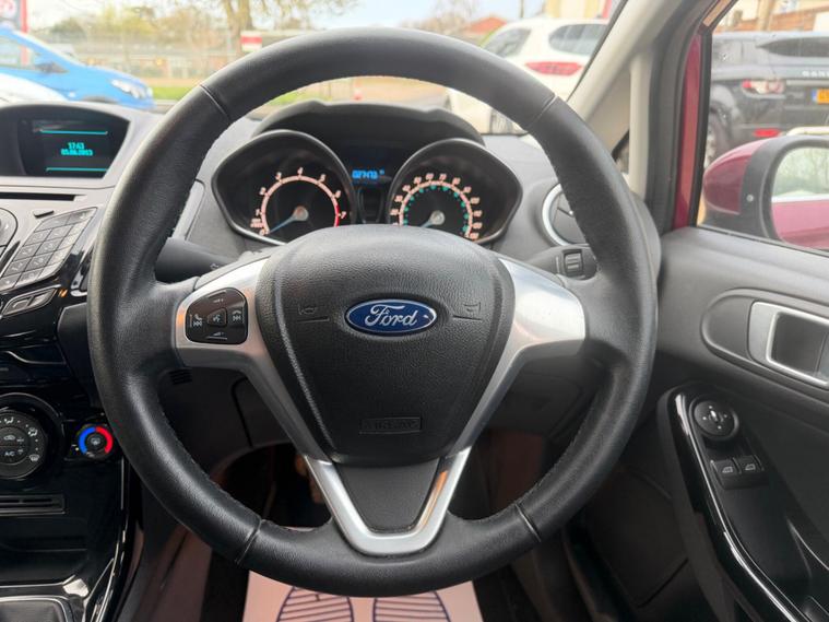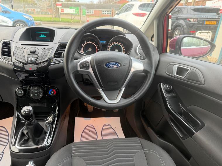Ford Fiesta 1.25 Zetec Euro 5 5dr in Red with only 27k miles from new. 2 owners. Full Service History and comes with a NEW MOT. Cambelt and Water Pump replaced. Excellent all round condition both inside and out! Drives Exceptionally Well. Comes with a Clean Cloth Interior, climate control, CD player, Bluetooth Phone Kit, Aux & USB Input + much more. 3 months AA Warranty & 12 months AA Breakdown cover included. Extended AA warranties available. ***FINANCE AVAILABLE*** All Major Cards Accepted. Part Exchange Welcome. Call today to view and drive!.