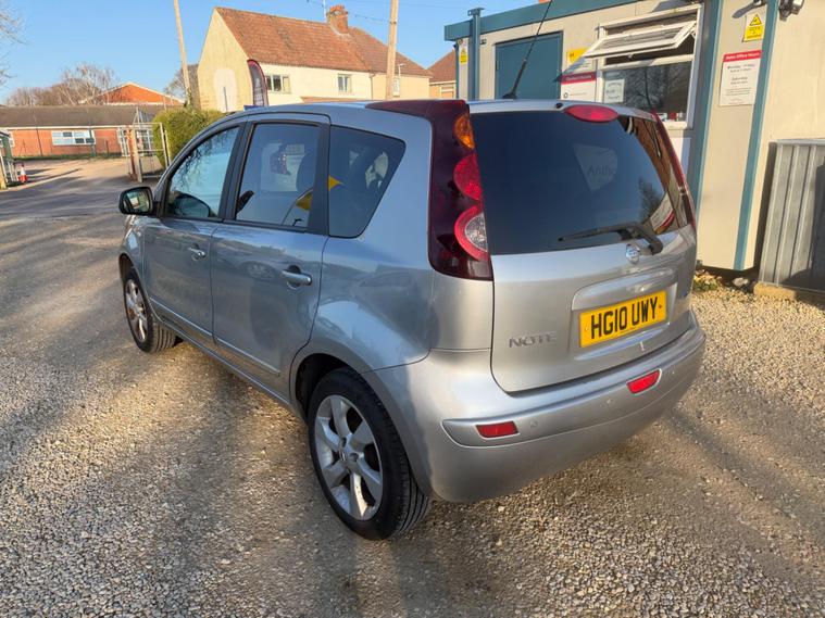 Nissan Note 1.4 16V n-tec Euro 4 5dr in Silver. This is an ideal first car with 101k miles from new. Excellent Service History & MOT till October 2026 with No Advisories. Drives very well. Standard equipment includes Navigation, Air Conditioning, Bluetooth phone connectivity, cruise control and much more. Drives very well. HPI CLEAR. All vehicles come with a 3 months AA warranty included. All Major Cards Accepted. Call to book a test drive today!.