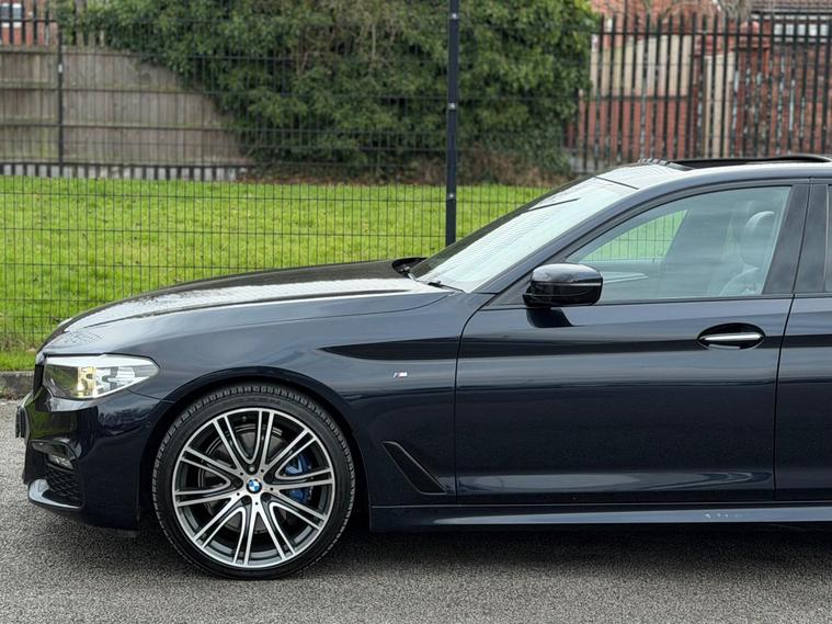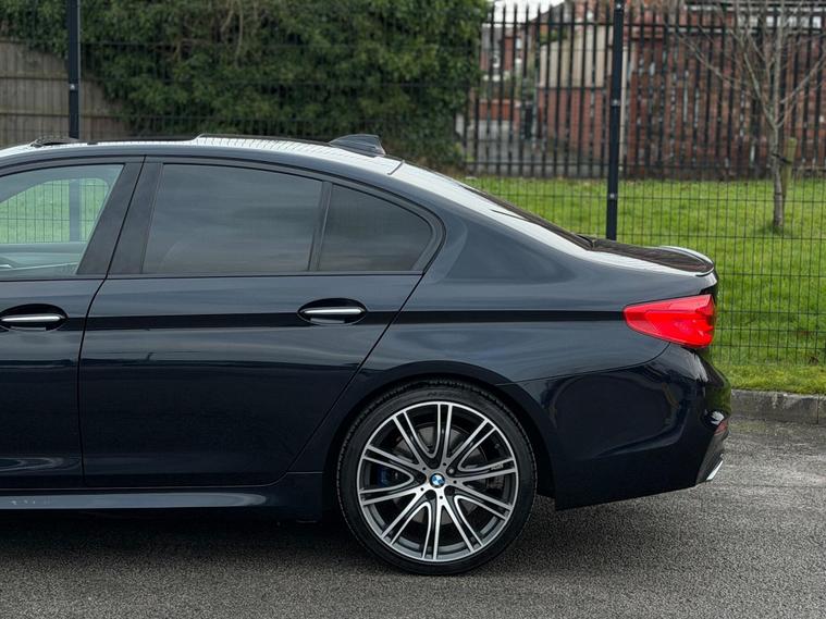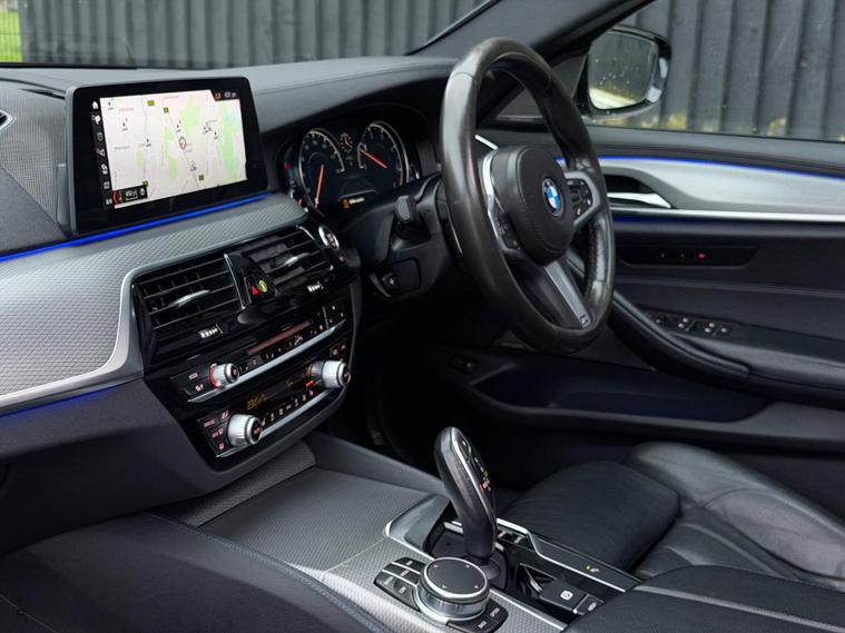 This BMW 5 Series 3.0 530d M Sport Auto xDrive Euro 6 Finished in Carbon Black and this vehicle comes with the following specification: M Sport Plus Package | Comfort Package | 20in Alloy Wheels - BMW Individual | Electic Glass Sunroof | Harman Kardon | Electric Memory Seat | Comfort Access | Enhanced Bluetooth with Wireless Charging | Powered Tailgate | Reversing Assist Camera | Sun Protection Glazing | Folding Mirrors | WIFI Hotspot | Dakota Leather | 2 Keys | Full BMW Service History |.