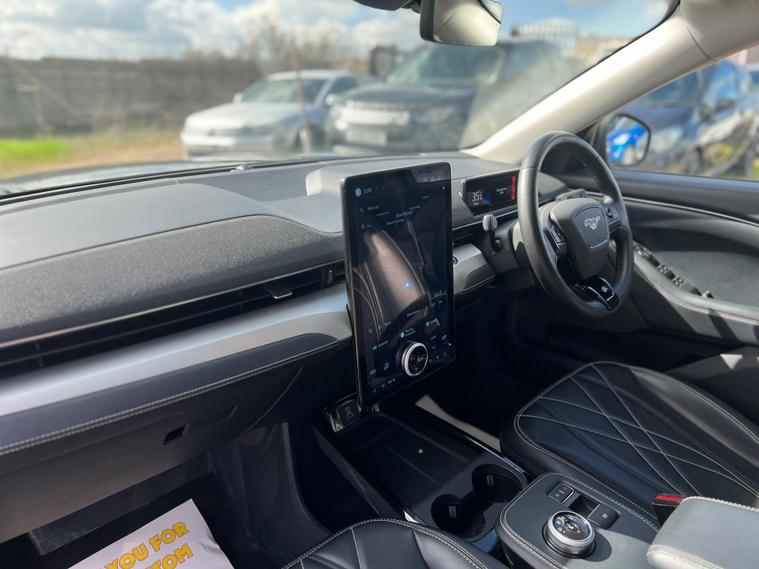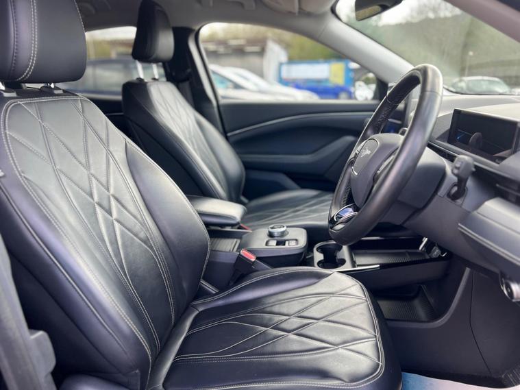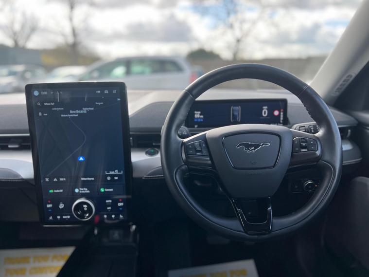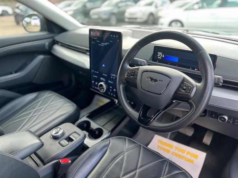 This 2021 Ford Mustang Mach E Standard Range is a superb example, having had only one owner since new. As an electric vehicle, it offers a smooth and efficient driving experience, powered by a 76 kWh battery that provides a maximum range of 273 miles when fully charged. Recharging at home using a 7kW charger will take approximately 11 hours and 24 minutes, while rapid public charging can take you from empty to 80% in just 43 minutes. This Mustang Mach E also comes equipped with a range of advanced features designed to enhance your journey, including front and rear parking sensors with parking assistance, adaptive cruise control with stop and go and lane centering, and blind spot information system with cross traffic alert. Inside, you'll appreciate the dual zone electronic automatic air conditioning and the comfort of a heated steering wheel.The performance of this electric Mustang Mach E is truly impressive, with a swift 0-62mph acceleration time of just 6.9 seconds. This quick response sets it apart from many other vehicles in its class, offering an engaging drive. The combination of its impressive electric range, rapid charging capabilities, and comprehensive suite of driver assistance and comfort features makes this 2021 Ford Mustang Mach E Standard Range a compelling choice for those seeking a modern, capable, and enjoyable electric car..