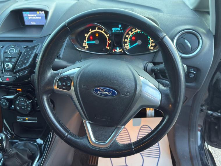 This 2015 Ford Fiesta Zetec S is a superb example of a popular hatchback, offering a blend of style and practicality. Powered by an efficient 1.0L petrol engine, this Euro 6 compliant model boasts impressive fuel economy, achieving up to 66 miles per gallon. Inside, you'll find a comfortable cabin equipped with manual air conditioning to keep you cool and Bluetooth hands free phone connectivity, allowing for safe and easy communication on the go.The performance of this Fiesta is also noteworthy, with a brisk 0 to 62 miles per hour acceleration time of just 9.4 seconds. Its low CO2 emissions further enhance its appeal, indicating a more environmentally conscious choice compared to many other vehicles in its class. This combination of excellent fuel efficiency, responsive performance, and desirable features makes the 2015 Ford Fiesta Zetec S a compelling option for any driver..