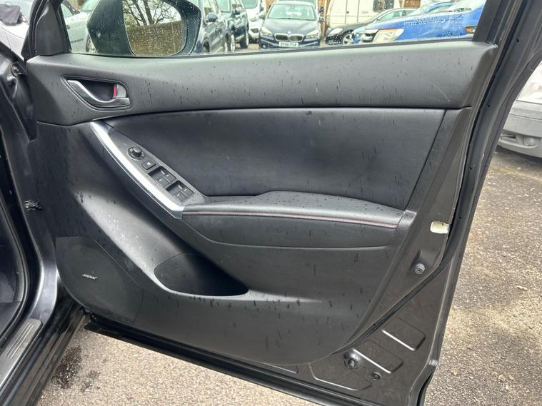 Last MOt advisories done , This 2014 Mazda CX-5 SKYACTIV-D Sport Nav is a superb example, having had only two owners from new. This four wheel drive model boasts a 2.2 litre diesel engine and meets Euro 6 emissions standards. It comes equipped with a comprehensive Safety Pack, luxurious Light Stone leather upholstery, and convenient Dusk Sensing Automatic Headlights. Enjoy effortless access with Smart Keyless Entry and immerse yourself in sound with the premium BOSE Centrepoint Surround Sound System, featuring nine speakers and a 6CD changer.This Sport Nav variant offers excellent value, indicated by its low insurance group and an impressive fuel economy of 51 miles per gallon, making it more economical than many similar vehicles. The large boot space provides ample room for luggage or shopping, further enhancing its practicality. These highlights demonstrate how this Mazda CX-5 stands out from the crowd, offering a compelling blend of performance, comfort, and efficiency..