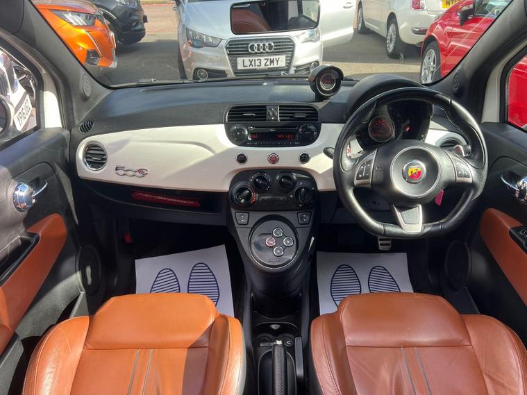 This 2011 Abarth 500C T-Jet offers a distinctive driving experience with its engaging 1.4L petrol engine. This model comes equipped with a useful wind stop for open top driving, Bi-Xenon headlights for enhanced visibility, and rear parking sensors to aid manoeuvring. Inside, you will find seats with a passenger memory function, allowing for personalised comfort, and manual climate control to manage the cabin temperature.With a fuel economy of up to 44 mpg, this Abarth 500C T-Jet is an efficient choice, and its low CO2 emissions further contribute to its appeal. These highlights demonstrate how this vehicle offers a compelling blend of performance, practicality, and economy when compared to other cars in its class..