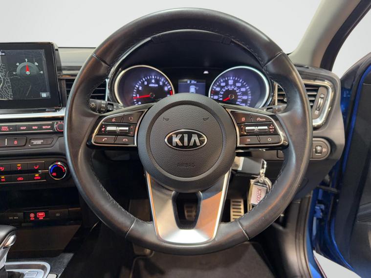 The Kia Ceed 1.4 T-GDi Blue Edition DCT Euro 6 (s/s) 5dr combines stylish design, responsive performance and excellent specification in a practical, well-equipped family hatchback package. Powered by Kia’s efficient 1.4-litre turbocharged petrol engine delivering 140 PS and strong torque, paired with the smooth 7-speed DCT automatic gearbox, it offers lively acceleration, refined cruising and impressive fuel economy with low emissions.Finished in striking Blue Flame Metallic for a vibrant, modern and eye-catching appearance. This example presents beautifully and benefits from full service history. It is HPI clear, with a full report provided for complete peace of mind.Factory specification includes:● 17'' alloy wheels● Blue Edition styling with unique badging and trim● LED daytime running lights● Rear privacy glass● Front fog lights● Electrically folding door mirrors● Dual-zone climate control● 8'' touchscreen infotainment with navigation, Apple CarPlay & Android Auto● Bluetooth connectivity and DAB radio● Leather steering wheel● Cruise control with speed limiter● Lane Keep Assist & Forward Collision-Avoidance Assist● Rear parking sensors● Rain-sensing wipers and auto headlights● Sports seats with Blue Edition upholsteryA superbly presented 2019 Kia Ceed 1.4 T-GDi Blue Edition DCT with the responsive turbo engine and automatic transmission, blending engaging drive, low running costs and standout looks. The Blue Flame Metallic finish and full service history make this a desirable, practical and reassuring family hatch ready to enjoy.All part exchange welcome with competitive valuations available.Walk-around video viewings and nationwide delivery can also be arranged..