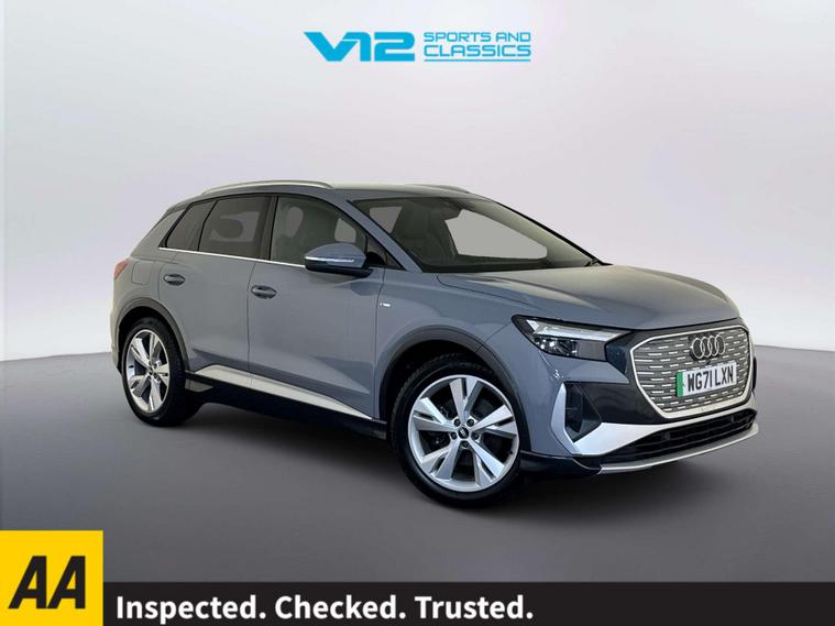 Introducing the Audi Q4 E-tron, a cutting-edge SUV that combines luxury, performance, and sustainability in one sleek package. Finished in a sophisticated Grey colour, the Audi Q4 E-tron exudes elegance and modernity. But don't be fooled by its refined exterior - under the hood lies a powerful 55kWh electric motor delivering 170 ps of pure driving pleasure.Step inside the Audi Q4 E-tron and experience a world of comfort and technology. From the premium S line trim to the latest in-car infotainment systems, every detail has been designed with your driving experience in mind.Don't miss your chance to own this exceptional Audi Q4 E-tron. Visit our showroom today and take it for a test drive. Experience the future of driving with the Audi Q4 E-tron. For peace of mind this vehicle has completed a multi point AA dealer's website finance is also available.We are open 7 days a week and have more than 1500 cars to choose from.All our Euro 4 Petrol and Euro 6 Diesel vehicles meet the ULEZ standard.Vehicle specification can be found below. From time to time vehicles have manufacturer recalls notified. Please read our recall policy on our website for further information. Please be advised that the advertised electric vehicle (EV) listings may experience battery degradation over time, resulting in reduced performance and range compared to the original specifications. Factors such as usage patterns, environmental conditions, and charging practices can contribute to this degradation. While we strive to provide accurate information, the actual battery health and performance of each EV may vary. Customers are encouraged to conduct thorough research and consider the potential impact of battery degradation before making a purchase decision. We recommend consulting with a qualified technician or conducting a battery health inspection for further assessment. This vehicle comes with an AVILOO Battery Health Certificate - the global standard for EV battery testing. Full independent analysis confirms excellent battery condition with detailed State of Health assessment, cell-level checks, and accurate range data. Certificate included with purchase for your complete peace of mind and future resale value.Disclaimer: While every effort is made to ensure the accuracy of vehicle specifications, features, and descriptions, errors and omissions may occur. Specifications and equipment may vary and may not be present on the vehicle at the point of sale. Buyers are advised to confirm all details with the seller before completing a purchase..