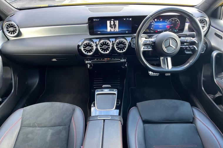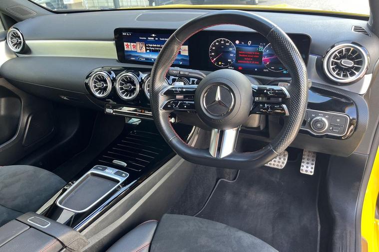 This 2023 Mercedes Benz A Class A180h AMG Line Executive boasts exceptionally low mileage for its year, having covered just 16080 miles. As a Mercedes Benz manufacturer approved vehicle, it offers peace of mind alongside its stylish AMG Line trim. This model features a 1.3 litre petrol hybrid engine, meeting Euro 6 emission standards, and comes equipped with convenient dual Bluetooth interfaces for seamless connectivity and wireless phone charging.Experience impressive performance with a 0-62mph acceleration time of just 9.2 seconds, demonstrating its dynamic capability. The generous boot space further enhances its practicality, making it a versatile choice for everyday needs. These attributes, combined with its efficient hybrid powertrain and advanced technology, position this Mercedes Benz A Class as a superior option within its class..