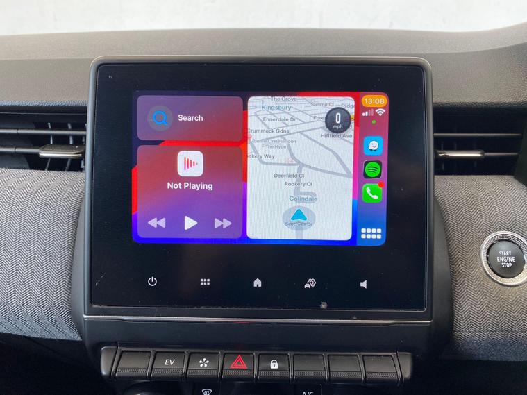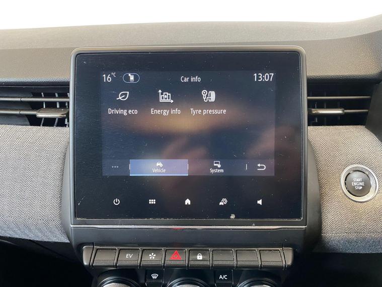 ULEZ COMPLIANT|PETROL HYBRID| AUTOMATIC | 2X KEYS |TECHNO |KEYLESS ENTRY | PARKING SENSORS | REVERSE CAMERA | ELECTRIC MIRRORS | CRUISE CONTROL | SPEED LIMITER | VOICE COMMAND | AUTO WIPERS | AUTO HEADLIGHTS | NAVIGATION | AC | AUX | USB | RADIO FM, AM, DAB | BLUETOOTH | APPLE CAR PLAY | ANDROID AUTO | DRIVE MODE OPTION MY SENSE, SPORT, ECO | HPI CLEAR |FREE AA BREAKDOWN COVER WITH ALL PURCHASES|FINANCE & WARRANTY AVAILABLE|DELIVERY AVAILABLE NATIONWIDE | £99 ADMIN FEEThis 2025 Renault Clio E-TECH Techno presents an exceptional ownership proposition with its remarkably low mileage of just 6000 miles, having had only one owner since new. This hybrid hatchback combines a 1.6 litre petrol engine with electric power, meeting Euro 6 emission standards. Inside, you'll find the Arkamys Audio System featuring 6 speakers, Bluetooth connectivity, and a branded sound system, alongside seamless smartphone integration via Apple CarPlay and Android Auto. Convenience is further enhanced by a wireless phone charger, an electrochromatic rear view mirror with automatic headlights activated by rain and light sensors, and a hands free keycard for keyless entry and push button start stop functionality. The Clio E-TECH Techno stands out with its impressive fuel economy, achieving a remarkable 66 miles per gallon, which indicates it is more economical than many similar vehicles. Its low CO2 emissions and low insurance group also contribute to lower running costs, making it a sensible choice. For those interested in performance, this model accelerates from 0 to 62 miles per hour in a brisk 9.3 seconds, demonstrating a good balance of efficiency and responsiveness..
