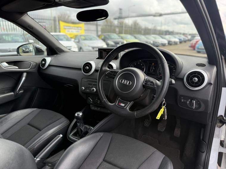 2014 Audi A1 1.2 TFSI S line Style Edition Euro 5 (s/s) 3dr presented in excellent condition with 2 keys, a brand new service and MOT.This S line Style Edition comes with a great specification including 17in alloy wheels, automatic Bi-Xenon headlights with LED daytime running lights, electronic stability programme, electric heated power folding mirrors, front electric windows, heated half leather S line sports seats, leather multifunction steering wheel with audio controls and voice command, DAB digital radio with CD player, Bluetooth connectivity, air conditioning, rear heated windscreen and ISOFIX child seat preparation with top tether.A stylish and sporty hatchback with premium build quality, low running costs and a fantastic driving experience. Ideal as a first car or a smart everyday vehicle..