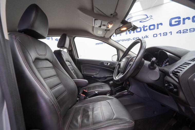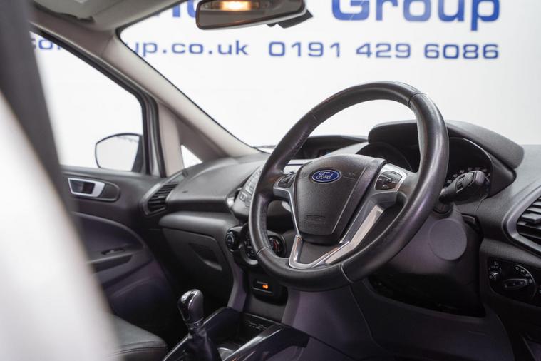 This Ford EcoSport TDCi Titanium is presented with a clear vehicle history check and will come with 12 months MOT for your peace of mind. This stylish compact SUV features a 1.5 litre diesel engine and is finished in the Titanium trim. Inside, you will find the desirable Titanium X Pack with Torina leather in Charcoal Black, SYNC with Applink for seamless Bluetooth connectivity, and Electronic Automatic Temperature Control for effortless climate control. For added convenience, it includes keyless entry and rear parking sensors with parking assistance.This Ford EcoSport stands out with its impressive fuel economy, achieving an excellent 61 miles per gallon, which is a significant advantage over many other vehicles in its class. Furthermore, its low CO2 emissions and low insurance group rating contribute to lower running costs, making it an economical choice for everyday driving.Please call our experienced sales team on 01914800597 for any additional specification queries, an in depth appraisal/ Video call or maybe we can help fund your new car. All our vehicles are prepared to the highest standards by our expert technicians in our fully equipped preparation centre as we're an AA approved dealer. Every car must go through a strict and thorough inspection, Items that require attention, mechanically or cosmetically are addressed prior to delivery. We offer a wide range of Finance and Warranty packages as well as fantastic trade rates for allow wheel refurbs/colour changes, window tinting and much more. All our vehicles are subject to a £199 service support fee and are therefore supplied with pre delivery service, 12 months MOT, 12 months AA breakdown cover and 6 months Auto Protect warranty that can be extended up to 24 month. All vehicles are HPI clear a full report can be supplied at point of sale. Home Delivery can be arranged throughout the UK. We welcome part exchanges and can tailor finance packages to suit you. See our latest stock on dealer's website