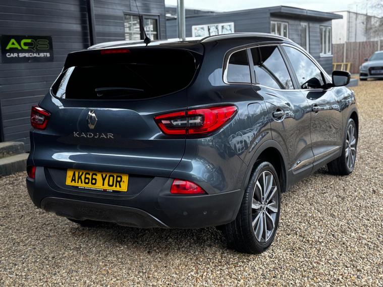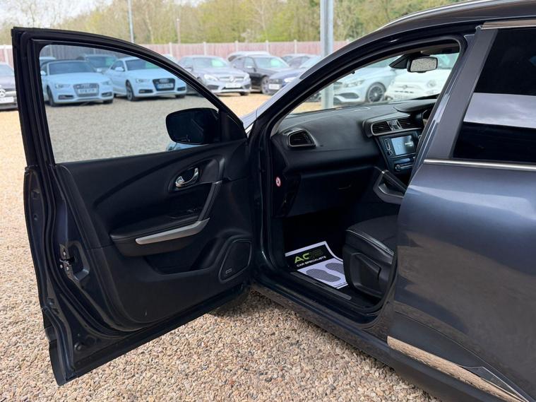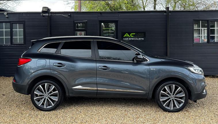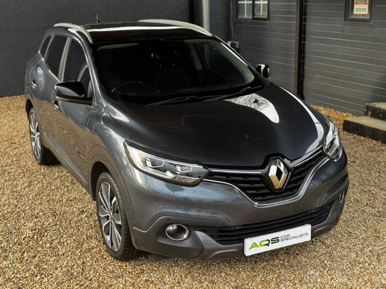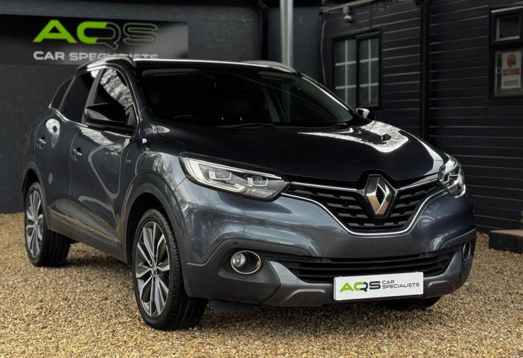 Here at AQS Car Specialist we take pride in being one of the few highly rated dealers for our customer service from Autotrader working closely together so we can go the extra mile to make sure you are getting the best service out there. All vehicles undergo a full visual and Mechanical health inspection, driven and tested. All essential work carried out with no expense spared. We offer an extended nation wide warranty with the option to extend up to 36 months, giving our customers full peace of mind and security when purchasing a car from AQS car specialists.Any inspection welcome, Test drive welcome, Part exchanges welcome. All dealer facilities available on site. Here at AQS Car Specialist we are delighted to offer this stunning looking example of a Renault Kadjar 1.6 DCi Signature Nav. Finished in Grey with a o contrasting Black half leather interior alongside 19 inch alloys. Recently serviced and comes with a fresh 12 months MOT. In good condition both inside and out, drives like a dream !These Kadjars are known for their stylish design, comfortable interior, being reliable and low maintenance. This particular example benefits from being fitted with some must have features which include, Dual Zone Climate Controlled Air Conditioning, Cruise Control, Sat Nav, Bluetooth Connectivity, Apple CarPlay/Android Auto, USB Input, Panoramic Glass Sunroof, Auto Led Headlights, Auto Rain Sensing Wipers, Reverse Camera, Front and Rear Parking Sensors, Keyless Go, Bose Surround Sound, Hill Start Assist, MultiFunctional Steering Wheel, Heated PowerFolding Side Mirrors, AutoDimming Rear View Mirror, Tyre Pressure Monitoring System, Insurance Approved Alarm and Immobiliser and the super useful Split Fold Rear Bench amongst all the usual Renault refinements you expect..