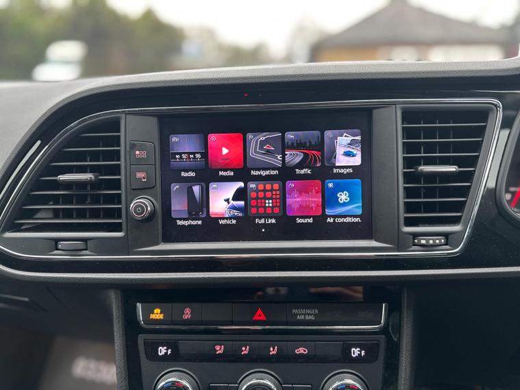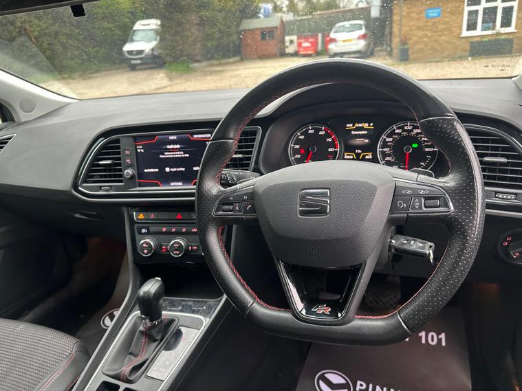 - Steering Wheel - Flat-Bottomed Perforated Leather with Red Stitching and FR Logo