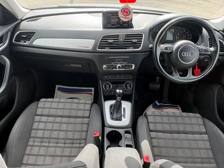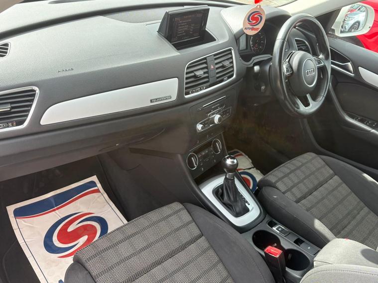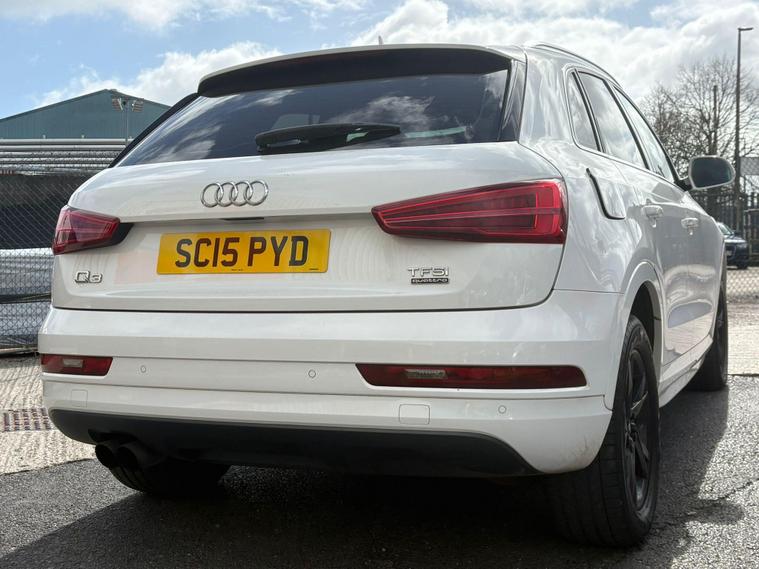 This 2015 Audi Q3 TFSI SE offers a compelling blend of performance and premium features. Powered by a 2.0 litre petrol engine and equipped with Audi's renowned four wheel drive system, this Euro 6 compliant model ensures confident handling in various conditions. The SE trim level is enhanced by the Audi Exclusive Black Styling Package and striking 19 inch alloy wheels in a 5 double spoke off road design. Inside, you will find luxurious Fine Nappa leather sports seats in black, complemented by the impressive BOSE Surround Sound System for an immersive audio experience.The Audi Q3 TFSI SE excels with its dynamic capabilities, achieving 0 to 60 miles per hour in just 7.3 seconds, demonstrating its spirited performance. This particular model also benefits from Audi Side Assist, which includes Blind Spot Assistance, providing an extra layer of safety and awareness on the road. These features collectively highlight the Q3's superior comfort, technology, and driving engagement compared to other vehicles in its class..