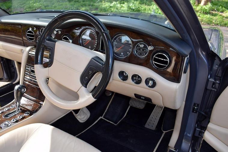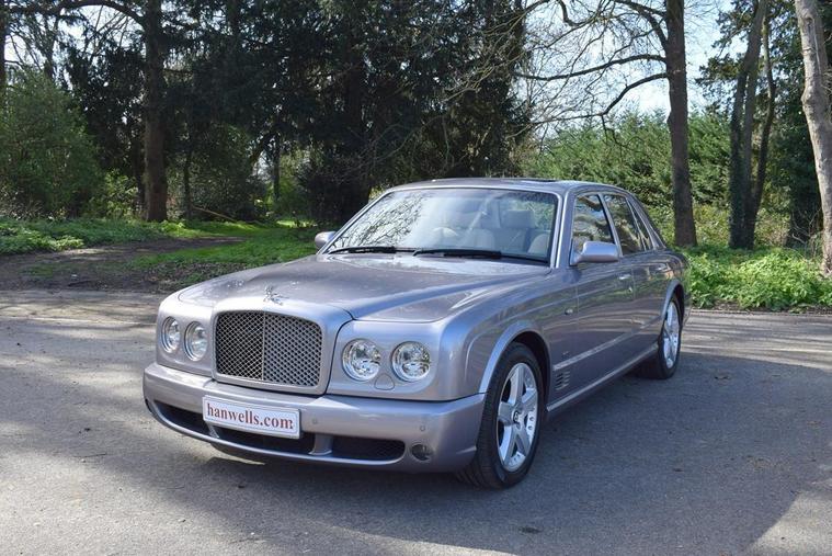 This is one of our 50 Bentleys in stock: 2005/54 Bentley Arnage T. Finished in Silver Tempest with 20 inch Arnage T alloys. Fitted with lower Le Mans grilles to the lower front wings, an electric sunroof, a Flying B mounted on the grille and quad exhausts. The interior is trimmed in Cotswold leather with secondary hide in Beluga and embroidered B's in Cotswold, with two tone steering wheel, Beluga carpets, dark stained Walnut veneers, picnic tables and vanity mirrors. A massive spec. with full history.Please see our website dealer's website to view our full selection..