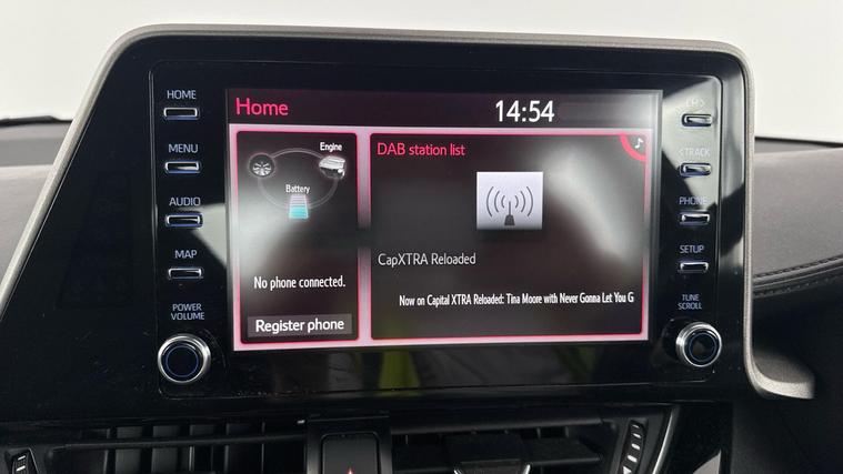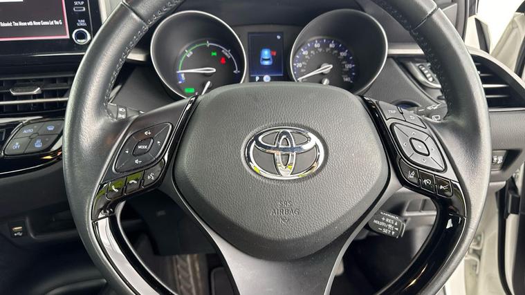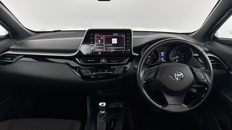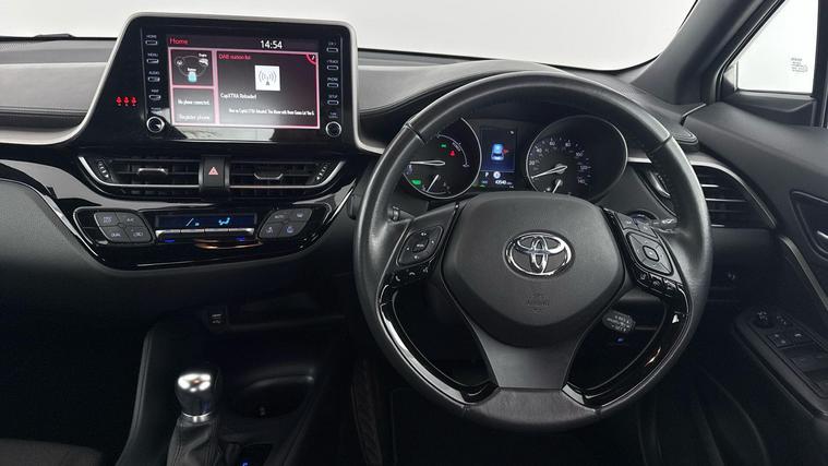 This 2023 Toyota C-HR VVT-h Icon is a Toyota manufacturer approved vehicle with a full service history and only one owner from new, offering you complete peace of mind. This stylish hatchback is equipped with a 1.8L petrol hybrid engine, meeting Euro 6 emissions standards. It comes with a 12 month warranty for added security. The Icon trim level includes a Tech Pack featuring Blind Spot Assistance, Keyless Entry, and front and rear parking sensors, complemented by a reversing camera for effortless manoeuvring. Stay connected and comfortable with Bluetooth connectivity and dual zone automatic air conditioning, while Adaptive Cruise Control enhances your driving experience.This Toyota C-HR stands out with its impressive fuel economy, achieving a highlight of 58 miles per gallon, which indicates it is more economical than many similar vehicles. Furthermore, its low CO2 emissions and low insurance group highlight its cost effectiveness, making it an attractive choice for everyday driving..