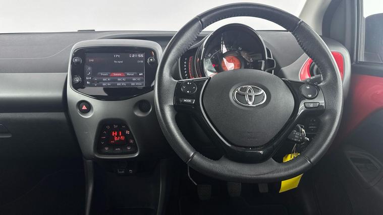 This 2021 Toyota AYGO VVT-i x-trend presents an exceptional opportunity with its remarkably low mileage of just 11, 218 miles, coupled with a full service history and 12 months warranty, confirming its Toyota manufacturer approved status. This stylish hatchback is powered by an efficient 1.0L Euro 6 petrol engine, designed for economical driving. Inside, you'll find a user friendly 7in x-touch multimedia system featuring Bluetooth connectivity, and seamless smartphone integration with Android Auto and Apple CarPlay powered by Pioneer. Comfort is assured with automatic air conditioning, and parking is made simple thanks to the integrated reversing camera.The AYGO x-trend stands out with its impressive fuel economy, achieving a highlight of 58 mpg, which is significantly better than many other vehicles in its class. Furthermore, its low insurance group and low CO2 emissions indicate that running costs are kept to a minimum, making it a sensible and cost effective choice for everyday motoring..