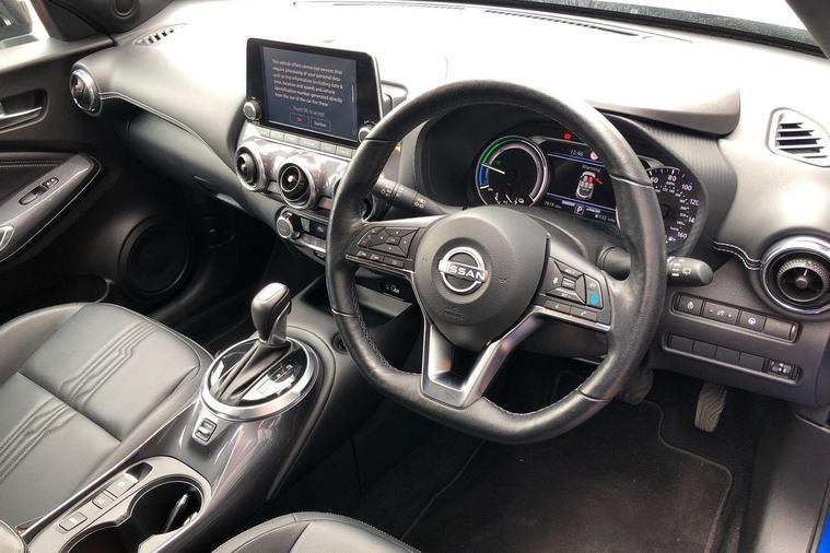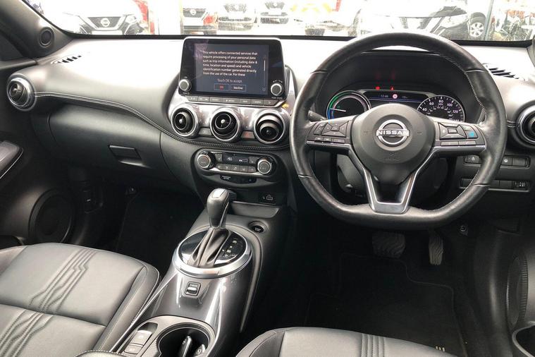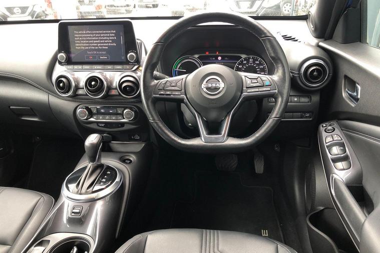 This 2024 Nissan Juke Tekna presents an exceptional opportunity with its remarkably low mileage of just 7774 miles, a testament to its careful ownership. This Euro 6 compliant, 1.6 litre petrol hybrid model is Nissan manufacturer approved and comes with a full service history, ensuring peace of mind alongside its remaining 12 months warranty. The Tekna trim level boasts convenient features such as Intelligent Key with a push button start and walk away lock and approach unlock functions, offering seamless keyless entry. Stay connected on every journey with integrated Apple CarPlay and Google Android Auto compatibility.Experience the efficiency and economy of this Juke, which achieves an impressive fuel economy of 55 mpg, highlighting its cost effective nature compared to similar vehicles. Furthermore, its low insurance group and low CO2 emissions further underscore its advantages, making it a sensible and economical choice for everyday driving..