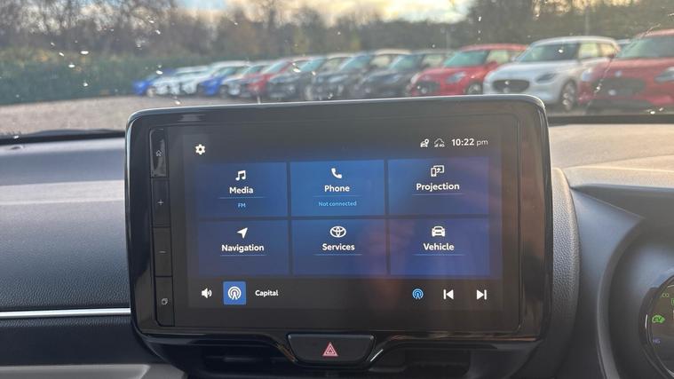 This 2023 Toyota Yaris VVT-h Excel is a Toyota manufacturer approved vehicle with an exceptionally low mileage of just 8028 miles, offering peace of mind with a 12 month warranty and a full service history. This Euro 6 compliant model boasts a 1.5L Petrol Hybrid engine, combining efficiency with smooth performance. The Excel trim level comes equipped with a suite of advanced features designed for convenience and safety, including a reversing camera with rear parking assistance, smartphone integration with Apple CarPlay and Android Auto, blind spot monitoring for enhanced awareness, and a navigation system. The integrated parking pack, featuring front and rear parking sensors, further simplifies manoeuvring in tight spaces.The Toyota Yaris VVT-h Excel stands out with its impressive fuel economy, achieving a remarkable 66 mpg, and its low CO2 emissions, indicating it is a more environmentally conscious choice compared to many similar vehicles. This combination of excellent running costs and advanced technology makes it an attractive option for those seeking a practical and modern compact car..