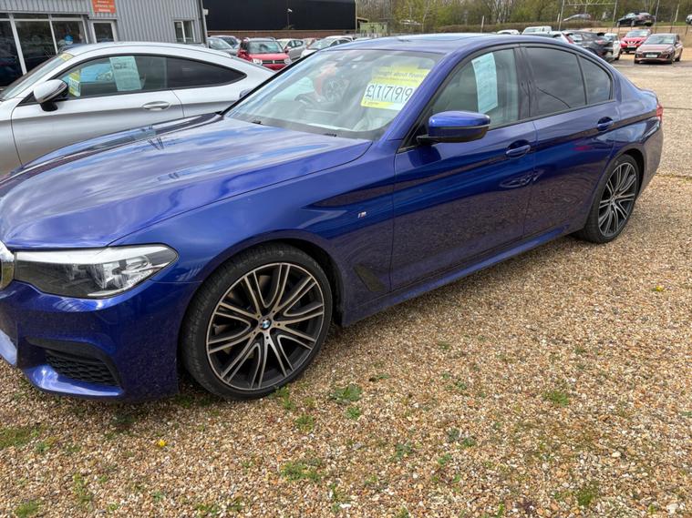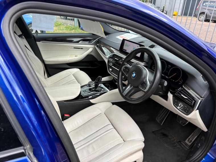 This 2018 BMW 5 Series 540i M Sport boasts a full service history and has had only two owners, offering excellent provenance. This four wheel drive saloon is powered by a 3.0 litre petrol engine and meets Euro 6 emission standards. It comes equipped with the desirable M Sport trim and features a Premium Package, including an electric glass sunroof and comfort seats with memory function. Further enhancing its appeal are the heated steering wheel and striking 20 inch BMW Individual Light V Spoke Bi Colour alloy wheels.The 540i M Sport offers impressive performance, accelerating from 0 to 62 miles per hour in just 4.8 seconds, a testament to its powerful engine and dynamic handling. This vehicle also benefits from a low insurance group, making it an economical choice. Its large boot space provides practicality for everyday use and longer journeys. A three month warranty is included, providing peace of mind for the new owner..