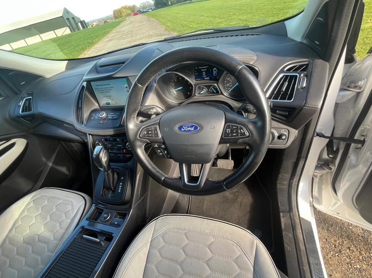 This 2018 Ford Kuga T Vignale offers exceptional peace of mind with its MOT valid until March 2027 and a full service history, including a recent service at 49, 187 miles on 23 March 2026, all confirmed by a clear vehicle history check. This Four Wheel Drive, Euro 6 compliant model is powered by a 1.5 litre petrol engine and comes with a 3 month warranty. The Vignale trim level ensures a premium experience, enhanced by features such as Bi-Xenon headlights with dynamic bending adaptive beam shape, a premium Ford DAB Navigation System with Ford SYNC3 including Bluetooth, and a rear view camera.The Kuga Vignale stands out with its advanced parking capabilities, featuring rear parking sensors, front parking sensors, and enhanced active park assist, making manoeuvring effortless. The inclusion of a rear camera further aids visibility. These features, combined with the sophisticated navigation system and adaptive headlights, demonstrate a higher level of specification and driver convenience compared to many other vehicles in its class.A very nice car with a full service history. 2 keys and all the books.Please call 01245482565 for further detailsAppointment only.