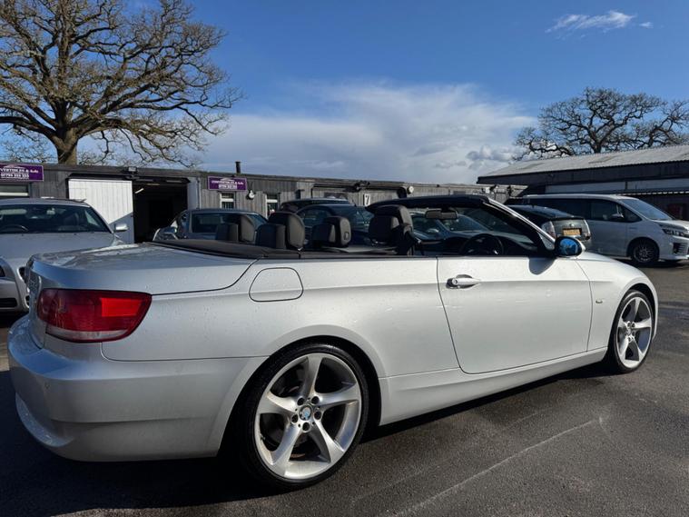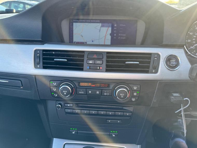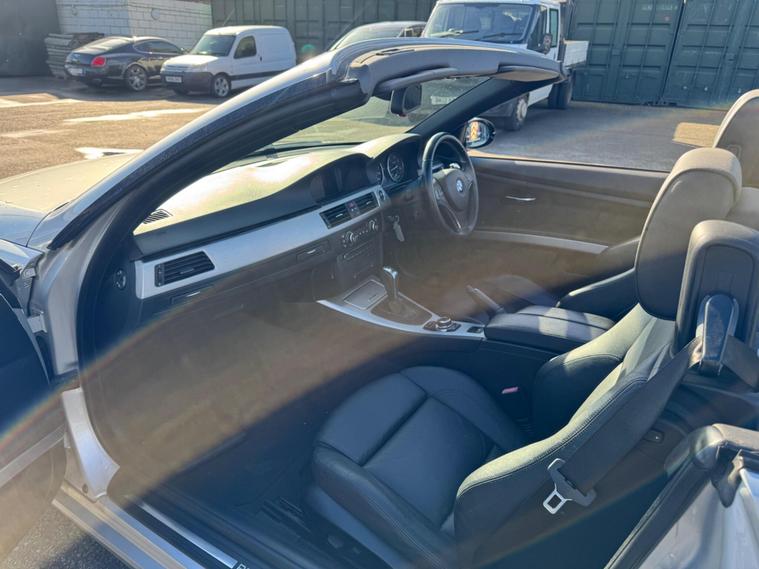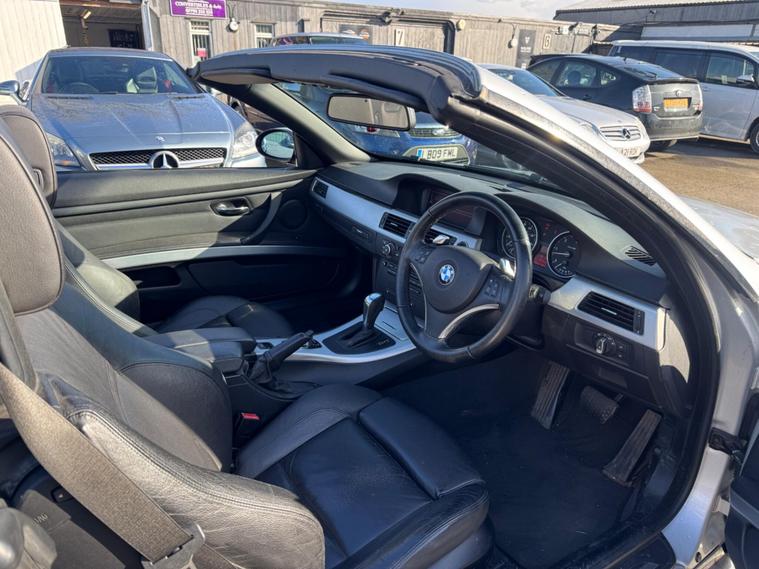 PLEASE NOT THE CAR HAS NOT HAD A FULLY DETAILED PROFESSIONAL VALET YEY A FULL SET OF 45 PHOTOS AS SOON AS IT ARRIVES BACK FROM THEM. This BMW 3 Series 3.0 325d SE Automatic Euro 4 POWER ROOF CONVERTIBLE LOOKS GREAT IN SILVER METALLIC WITH EBONY FULL DAKOTA LEATHER HEATED ELECTRIC MEMORY SEATS. THE LAST OWNER HAS CHERISHED THE BMW FOR OVER ON 5 YEARS & COMES WITH A NEW MOT & A NEW SERVICE. THE OWNER HAS SERVICED THE CAR HIMSELF IN THE LAST 3 YEARS. THERE IS A POWER CONVERTIBLE ROOF IT HAS HAS P.A.S..WIDE SCREEN COLOUR SATNAV UNIT, STEREO RADIO CD. BLUETOOTH TELEPHONE CONNECTION, DUAL ZONE CLIMATE CONTROL AIR-CONDITIONING, REMOTE CONTROL CENTRAL LOCKING SYSTEM, ZENON HEADLIGHTS, FRONT & REAR PARKING SENSORS, 19'' ALLOY WITH GOOD TYRES ALL AROUND. THE CONVERTIBLE COMES WITH 2 SETS OF KEYS & ALL THE BOOKS AND MANUALS. This 2009 BMW 3 Series 325d SE is a well maintained example with only four previous owners. It features a powerful 3.0 litre diesel engine and comes in the SE trim. Inside, you will find comfortable heated front seats, front sports seats for added support, and the SatNav Professional Multimedia system to guide your journeys. The exterior boasts a high gloss shadow line for a sleek finish. This BMW 3 Series offers several advantages over similar vehicles. Its acceleration is impressive, reaching 0-62mph in just 8.0 seconds, demonstrating its strong performance. The low insurance group rating means more affordable ownership. Furthermore, the generous boot space provides ample room for luggage or shopping, making it a practical choice for everyday use and longer trips..