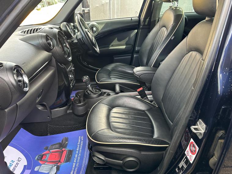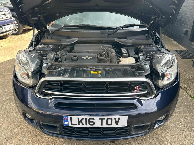 <<24 MONTHS WARRANTY - 12 MONTHS AA BREAKDOWN COVER - ULEZ COMPLIANT >>R60 MINI COUNTRMAN COOPER S AUTO 184 BHP - COSMIC BLUE METALLIC - CARBON BLACK LOUNGE LEATHER SPORTS SEATS - GLASS PANORAMIC ROOF - MINI SAT NAV - BLUETOOTH PHONE - BLUETOOTH AUDIO PLAY - DAB RADIO - VOICE CONTROL - FRONT ARMREST - SPORT BUTTON - XENON LIGHTS - REAR PARKING SENSORS - PIANO BLACK TRIM - CARBON BLACK INTERIOR - SUN PROTECTION GLAZING - STORAGE COMPARTMENT PACKAGE - LED FOG LIGHTS - COMFORT ACCESS - TYRE PRESSURE DISPLAY - ROOF RAILS - REAR SPOILER - POWER FOLD MIRRORS - KEYLESS ENTRY - FULL SERVICE HISTORY - MOT EXPIRES 28/02/2027 - IMPECCABLE CONDITION THROUGHOUT MUST BE SEEN TO BE APPRECIATED - VERY WELL MAINTAINED VEHICLE - FIRST TO VIEW WILL BUY - Editions and packagesS785 White direction indicator lightsS7L5 WiredS7Y2 Chili IIComfort and interior equipmentS473 Armrest frontS4UF Sport buttonS481 Sports seatS4BD Interior surface Piano BlackS4UL Flat load platformS494 Seat heating driver/passengerS4CU Interior colour, Carbon BlackS493 Storage compartment packageS4E1 Inlay Colour Carbon BlackS420 Sun protection glazingS403 Glass roof, electricalS4UK 5-seaterS4AA Headlining anthraciteS6NF Music interface for SmartphoneS6VC Control, ComboxS6NE Extend. mob. phone preparation BluetoothS6FP Radio MINI Visual BoostS620 Voice controlS6NM MINI ConnectedS6UM MINI navigation systemS654 DAB tunerS507 Park Distance Control (PDC), rearS563 Light packageS521 Rain sensorS522 Xenon LightS5A1 LED Fog lightsS205 Automatic transmissionS249 Multifunction f steering wheelS2XA Sport leather st. wheel w/ shift paddlesS2VB Tyre pressure displayS2GT MINI LA wheel Turbo FanS314 Door mirror, driver lock, heatedS386 Roof railingS325 Rear spoilerS313 Fold-in outside mirrorS322 Comfort accessS3AR Preparation, rear luggage rackS345 Chrome Line InterieurS3AB Mirror cap in vehicle colourS381 Outs.mirror black/roof vhcle colourS3L2 Piano black exterieurS1CD Brake Energy Regeneration.