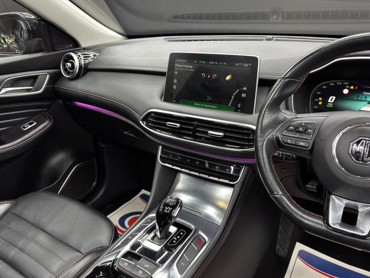 Here at Motor Gurus we are delighted to offer a MG MG HS 1.5 T-GDI 16.6kWh Exclusive Auto. This vehicle is in very good condition when taking into consideration the vehicle's age and mileage. This specific vehicle is finished in a GLOSS BLACK and is matched with a BLACK LEATHER/SUEDE interior. This vehicle comes included with: REAR PARKING SENSORS, 360° VIEW PARKING CAMERAS, PRIVACY GLASS, SLIDING GLASS PANORAMIC ROOF, ELECTRIC TAILGATE, FRONT HEATED/ELECTRIC SEATS, PERFORATED GRIPPED LEATHER STEERING WHEEL, CRUISE CONTROL, AUTOMATIC HEADLIGHTS, DIGITAL COCKPIT, AUTO HOLD, TWIN CUPHOLDERS, DRIVING MODES, CLIMATE CONTROL, SAT NAVIGATION, DAB RADIO, BLUETOOTH AUDIO, TELEPHONE CONNECTIVITY, APPLE CARPLAY, AMBIENT LIGHTING, COLLISION AVOIDANCE, LANE KEEPING ASSIST, BLIND SPOT MONITORING, TYRE PRESSURE MONITORING AND MUCH MORE! Our MG MG HS 1.5 T-GDI 16.6kWh Exclusive Auto has come to us with 2 KEYS and is a 1 FORMER KEEPER (2 owners) FROM NEW! We will also provide a 12 MONTH MOT and a FRESH OIL SERVICE before it leaves our premises (OTR)..